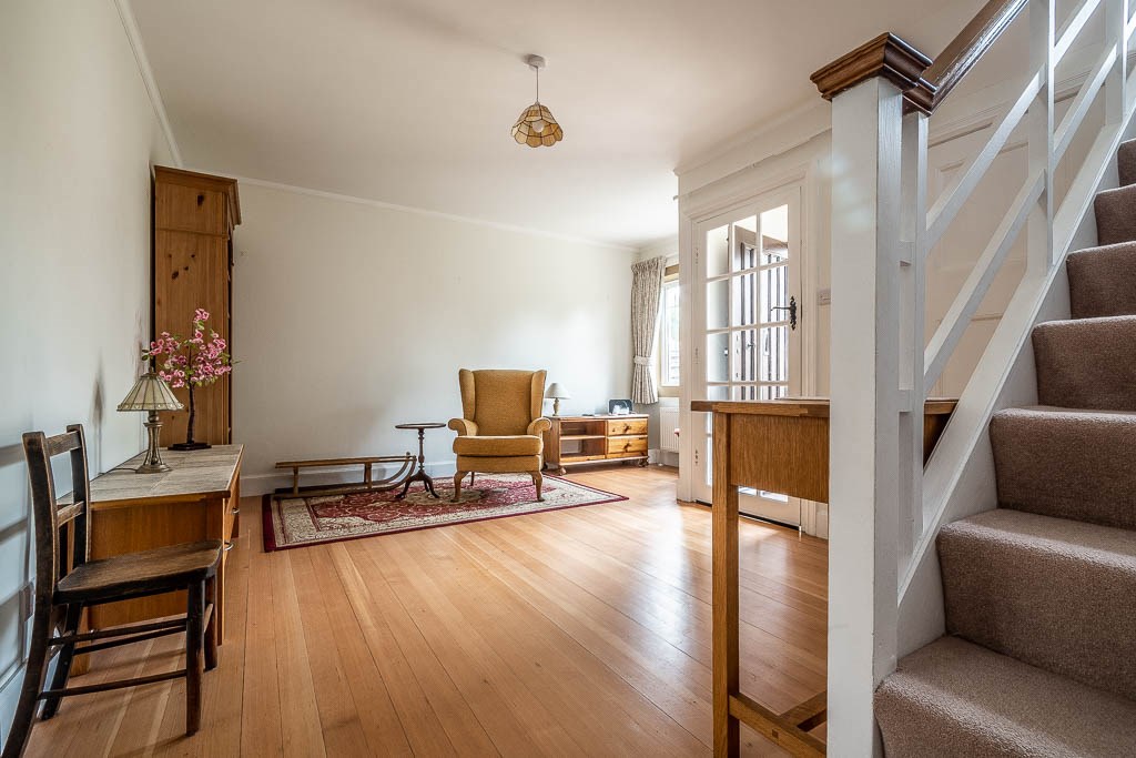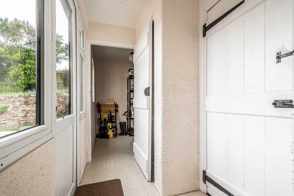 The attractive enclosed front garden is part walled and laid to lawn with well stocked shrub borders. An attractive stone path leads to the front door. A side passageway is shared with the neighbouring property and leads to the rear lobby of the property.