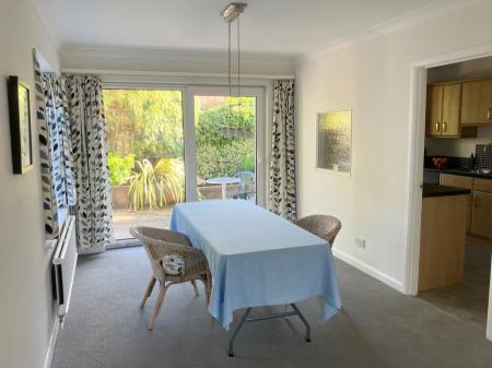 Dining Area: Radiator with shelf above, uPVC double glazed sliding patio door offering pleasant outlook to rear garden. Door leading to the kitchen.