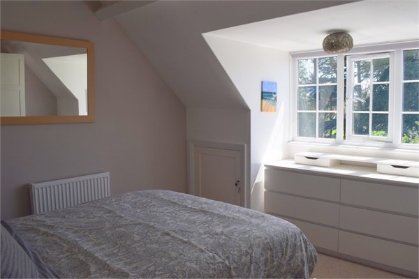 Double glazed window to the rear aspect providing views over the communal grounds with rural views beyond and brief glimpses towards the sea. Telephone point, access to eaves storage space.