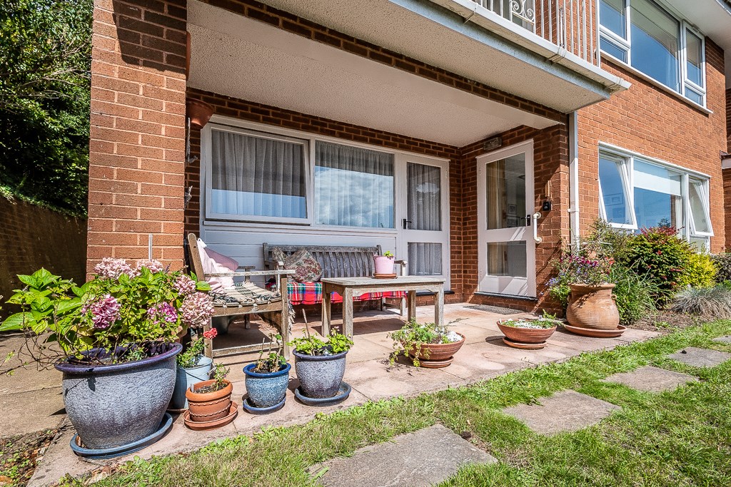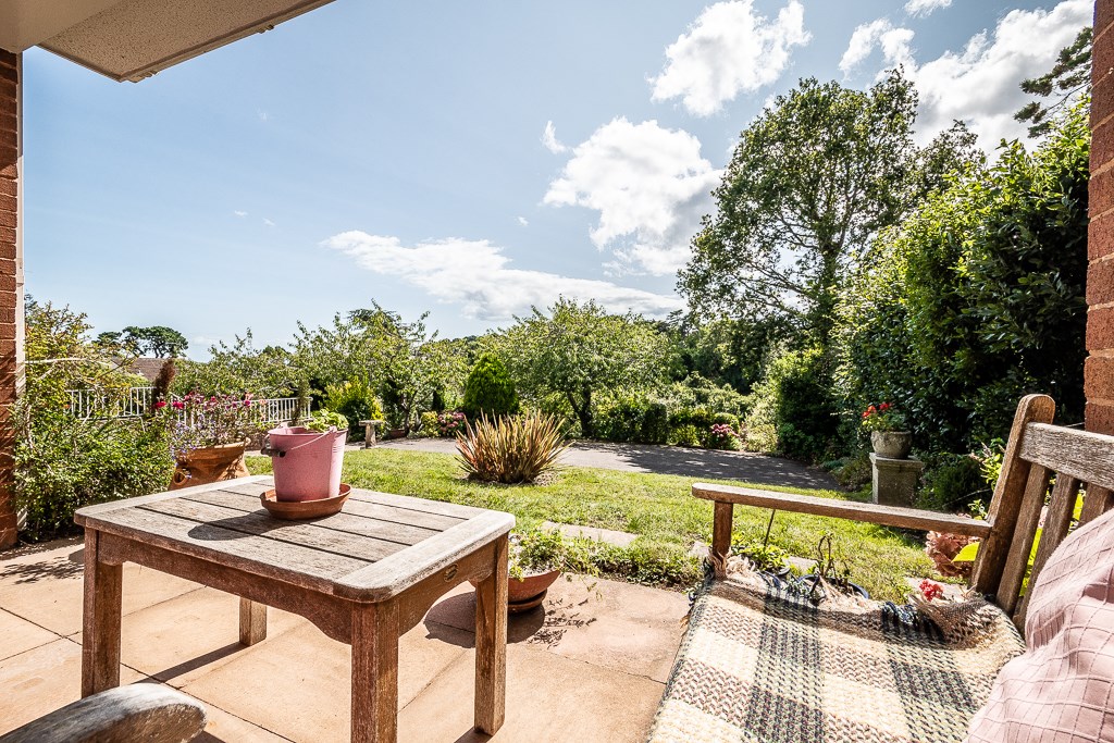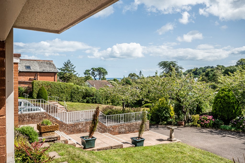 A purpose built, ground floor (3 bedroom) apartment with superb coastal and countryside views across the Knowle Valley, over the town and down towards the sea. Little Knowle Court is a highly sought after and intimate development of just six units within a quiet residential area just half a mile from the town centre. Number 5 enjoys the most private position and is modernised to a good standard, offering light and spacious accommodation with lovely open views over the front elevation. Other benefits include gas central heating, double glazing, modern fitted kitchen, modern white bathroom suite with shower, further separate shower and an en-suite cloakroom to the master bedroom. The property offers many notable assets none more so than the large sun balcony which enjoys a southerly aspect and the enjoyment of the panoramic outlook of the Knowle Valley and Budleigh Salterton. There are also sea glimpses to be enjoyed. Outside, there are beautifully kept communal landscaped gardens, garage and parking. There is no onward chain