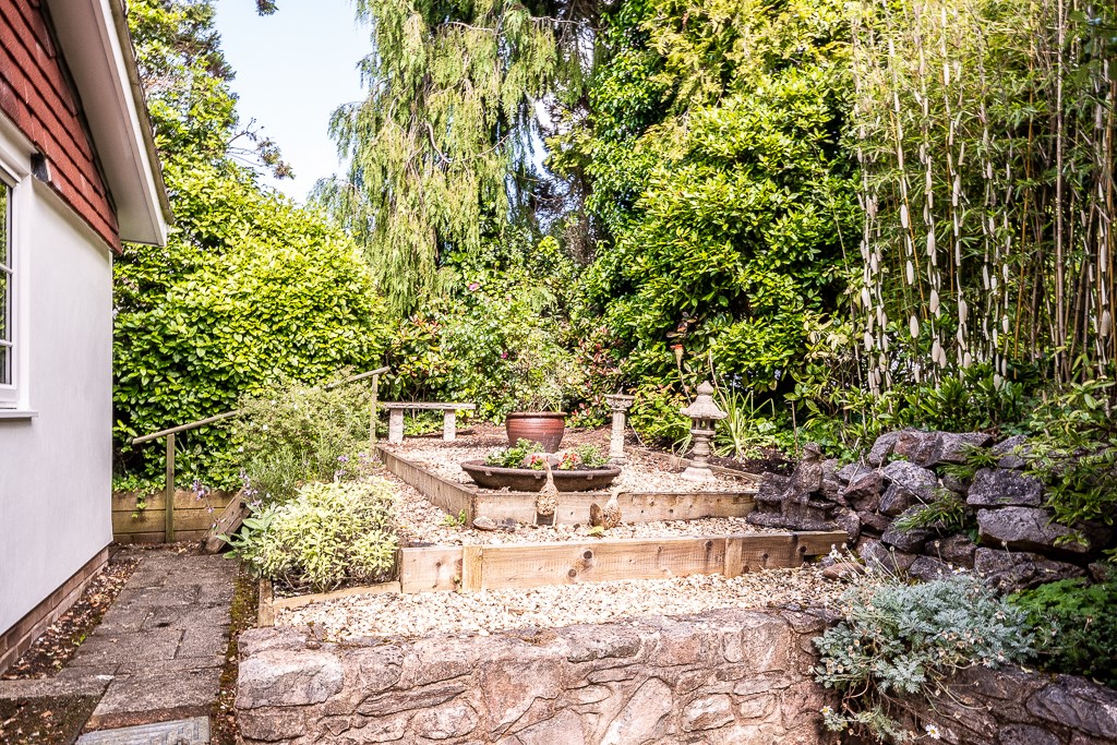 To the front of the property is a tarmacadam driveway providing parking and access to the garage. The beautiful rear garden has been attractively designed and well-kept by the current owner and offers privacy and a sunny aspect.