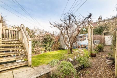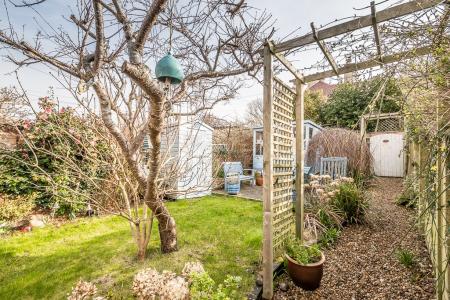 Outside, the property benefits from a lovely sun terrace off of the kitchen which affords privacy as well as pleasant views. Steps lead down to a lovely landscaped garden complete with lawned area and mature borders. The borders are made up with with a wide range of specimen shrubs and plants that provide interest and colour throughout the seasons. There is a shed and potting house for enjoyment and convenience.