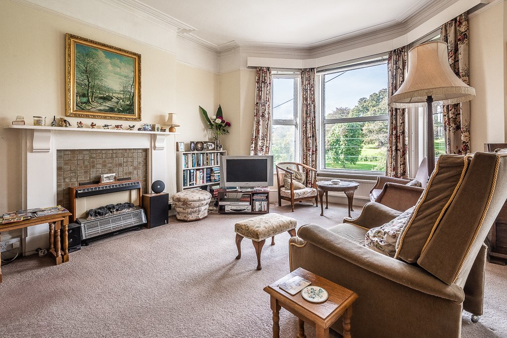 The apartment enjoys charming, westerly views over The Green from the sitting room whilst the private, rear garden is easily accessible from the property. The generously proportioned accommodation is in need of some modernisation, but has wonderful scope for personalisation and improvement. The owners have retained many unspoilt, characterful features, notable examples include picture windows with large bays, high ceilings with fine mouldings, picture rails, fireplace with chimney and some original doors.
