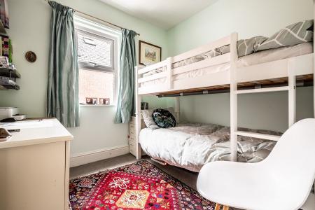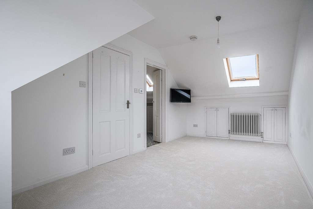 Bedroom One: Enjoying a double aspect with views to the rear and an Easterly aspect providing morning sunshine. Solid wood floor throughout. Ample eaves storage complete with hanging rail. Velux window.