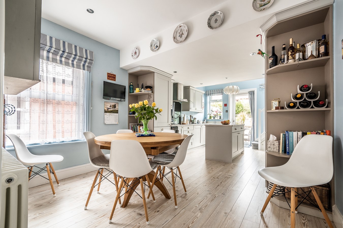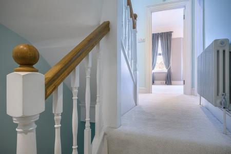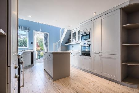 The accommodation is beautifully presented, tastefully decorated throughout with high quality kitchen and bathroom suites. The owners have retained many unspoilt, characterful features, notable examples include picture windows with large bays, high ceilings with fine mouldings, picture rails, feature fireplaces, period cast iron radiators, original doors and a very attractive double staircase. Overall the accommodation is spacious and versatile, many of the rooms enjoy double aspects and lovely views towards The Green at the front, or over its private garden at the rear. Outside, the property benefits from a lovely sun terrace off of the kitchen which affords privacy as well as pleasant views. Steps lead down to a lovely landscaped garden complete with a further patio area, raised lawn area and mature borders. The borders are made up with with a wide range of specimen shrubs and plants that provide interest and colour throughout the seasons. There is a storage and rear access for enjoyment and convenience.