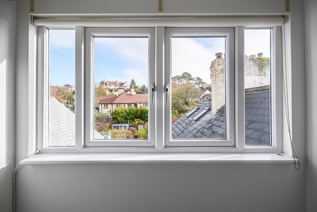 An exceptionally spacious, purpose built first floor flat with superb panoramic views over the town and out to sea. Ingl...