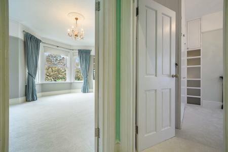 Bedroom Two: A well proportioned and quiet room with feature fireplace and picture rails. Range of built in wardrobes with storage over.