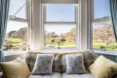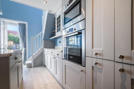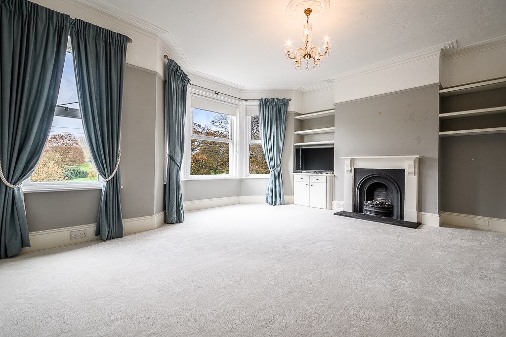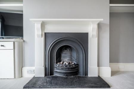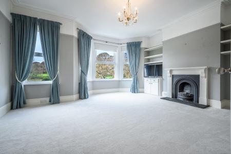 Sitting Room: A charming room with wonderful views over The Green and a very sunny Westerly aspect. Large picture windows and bay window. Picture rails and ornate coving and mouldings. Feature fireplace. Range of built in storage and shelving.