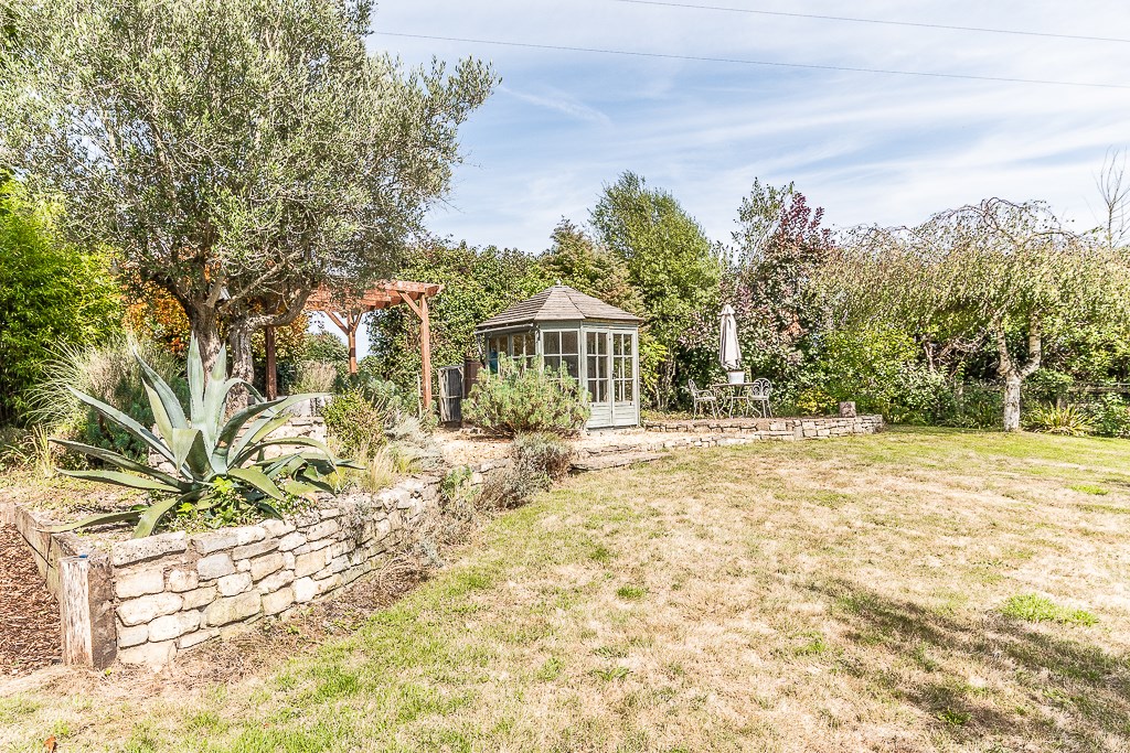 Outside, there are delightfully landscaped rear gardens with a Mediterranean style area, summerhouse, lawn, patio terraces and vegetable plot. The eastern boundary backs onto open countryside, but the gardens enjoy the most pleasant outlook in all directions. There is also a detached double garage and ample parking on the private drive .