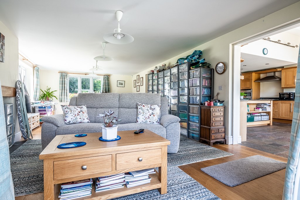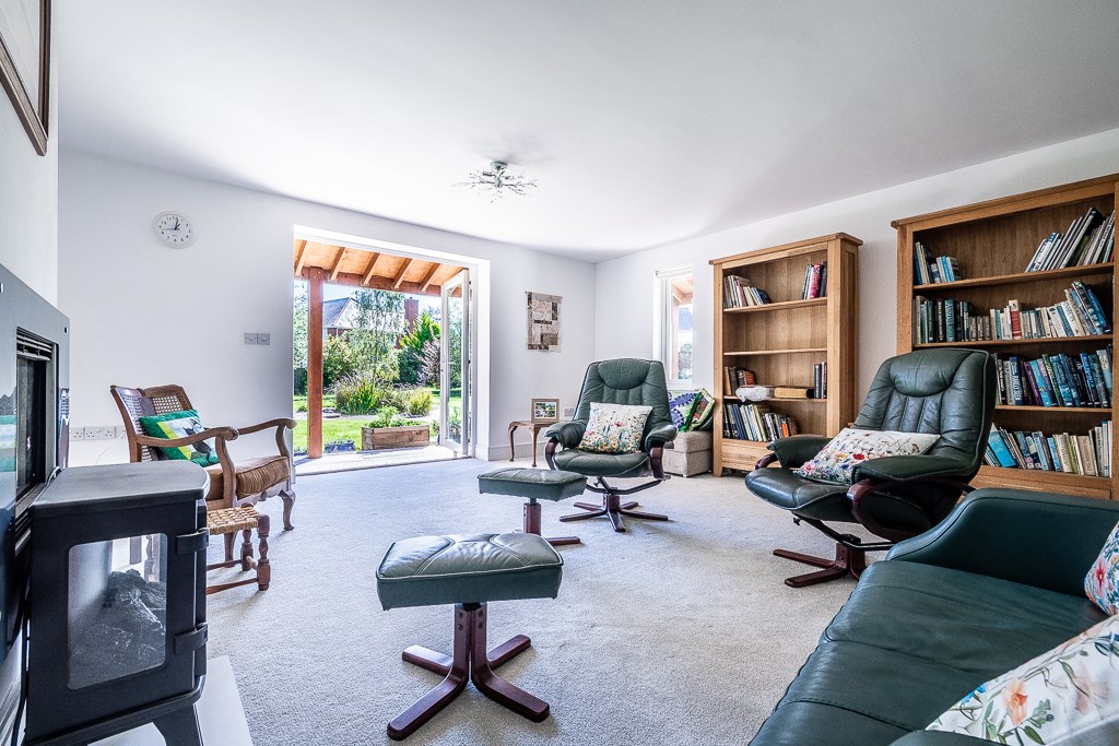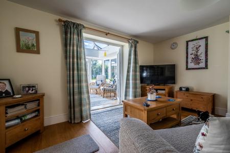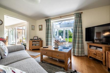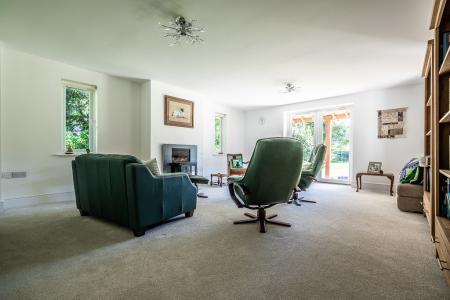 SECOND SITTING ROOM/FAMILY ROOM: 7.87m x 4.19m (25'10" x 13'9") A large family room/children's sitting room with feature fireplace.; windows to the front and side elevations; radiator; television point; opening back to the kitchen; double glazed door to the conservatory.