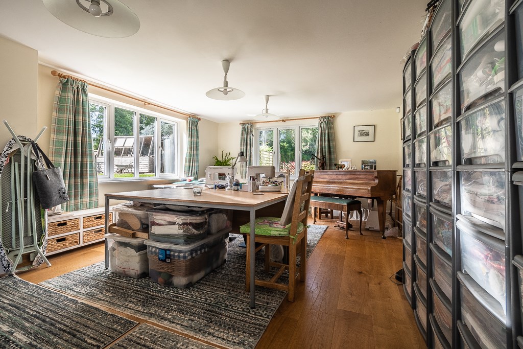 WORKSHOP: 5.79m x 2.34m (19'0" x 7'8") Double glazed windows and uPVC door to garden; power and light connected.
