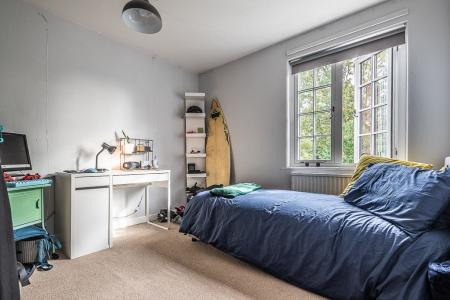 Double glazed window to front, large built-in cupboard, built-in wardrobe to one side of alcove, radiator.
