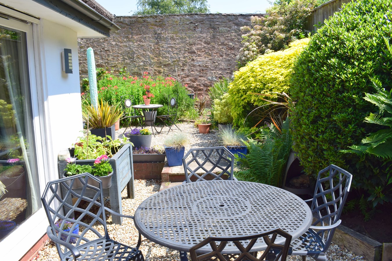 The house is set well back from the lane behind a gravelled forecourt with parking space for two vehicles whilst leading to the integral garage which has light, power and plumbing. The front and rear gardens are beautifully landscaped, the rear garden is a delightful feature of the property measuring approximately 34' x 26' (10.36m x 7.92m) in an L-shaped format. The rear boundary is bordered by an impressive high stone wall providing a high degree of seclusion and privacy