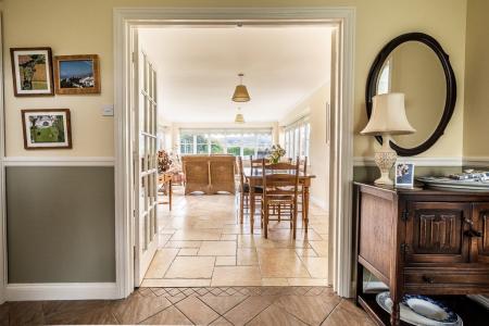There is a wide driveway for parking up to three cars comfortably. This area gives access to the double garage, and a paved path leads around the property. The gardens are enclosed for privacy, immediately to the rear of the property there is a paved sun terrace for the enjoyment of sitting and entertaining.