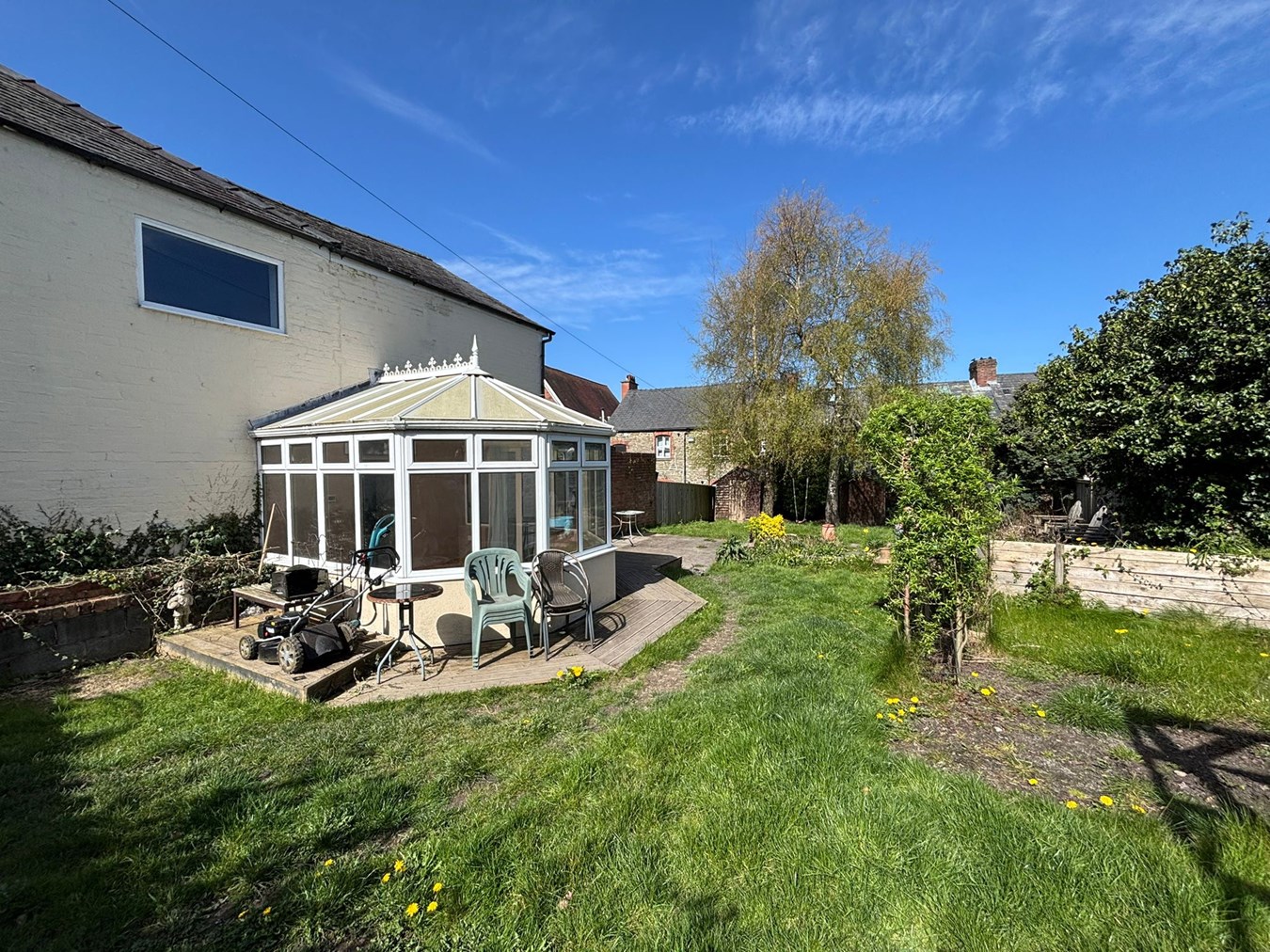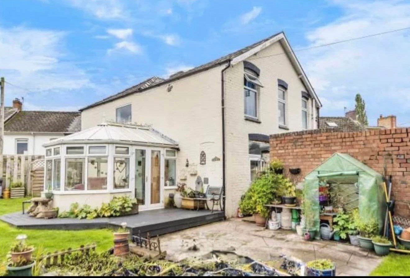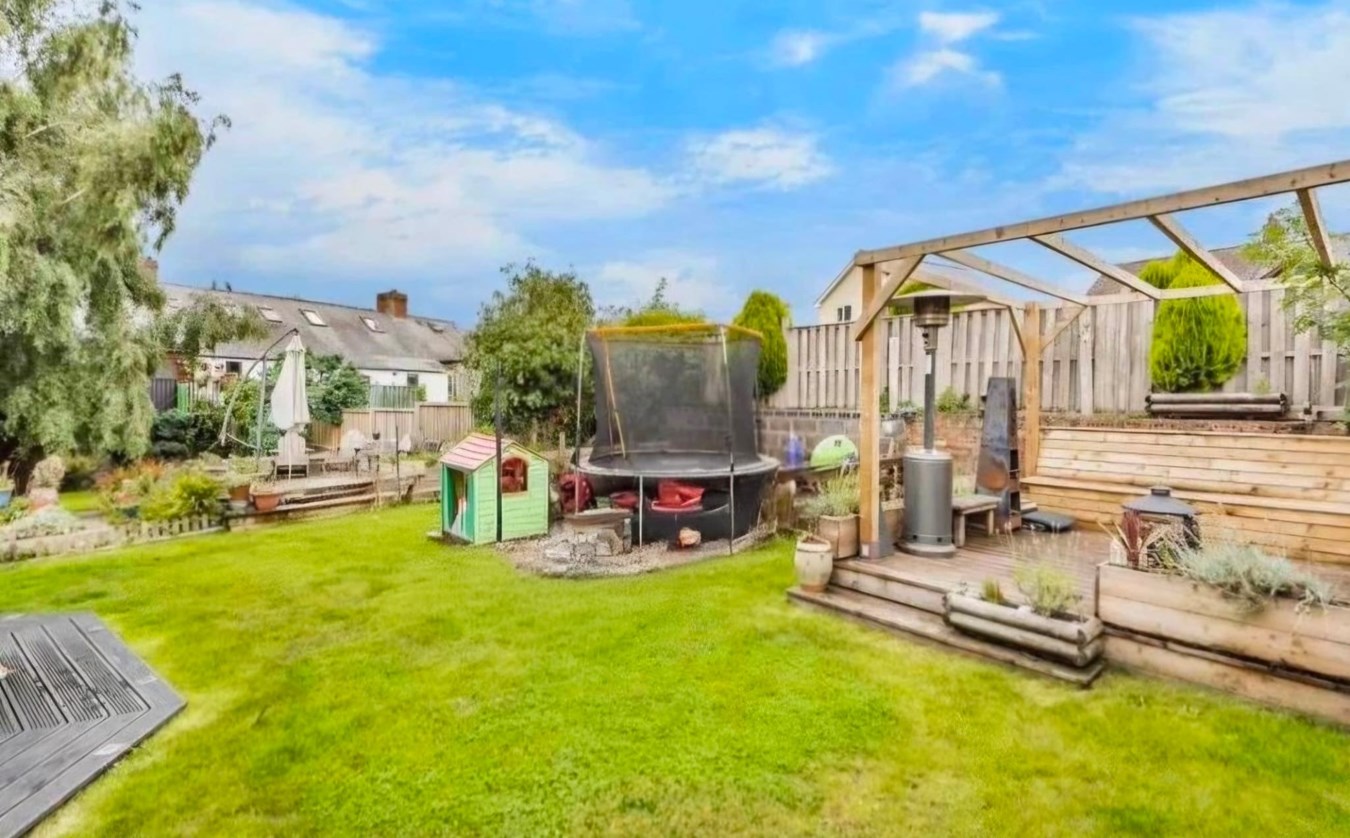 This spacious, detached family home is ideally situated in a convenient location, just a short distance from the town centre and its amenities. On the ground floor, an entrance hall leads through to a living room, featuring a fireplace and a mix of wooden and flagstone flooring. To the rear is a generous kitchen/diner, fitted with a range of cupboards and worktops, integrated oven and hob, and space/plumbing for further appliances. Patio doors open directly onto the garden, making it a great space for both everyday living and entertaining. A conservatory completes the ground floor accommodation. Upstairs, a large landing leads to four bedrooms and a family bathroom, fitted with both a bath and separate shower. Outside, the garden is a real highlight. Well established and thoughtfully arranged it is made up of lawns, decked seating areas, ornamental trees and a charming willow arch. The property also benefits from off-road parking. A useful side passage provides additional storage, although it does carry a right of way for the neighbouring high street shop. Offered with no onward chain, viewing is highly recommended.