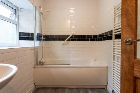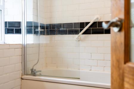 - Large family bathroom with WC, wash hand basin, and bath with shower over