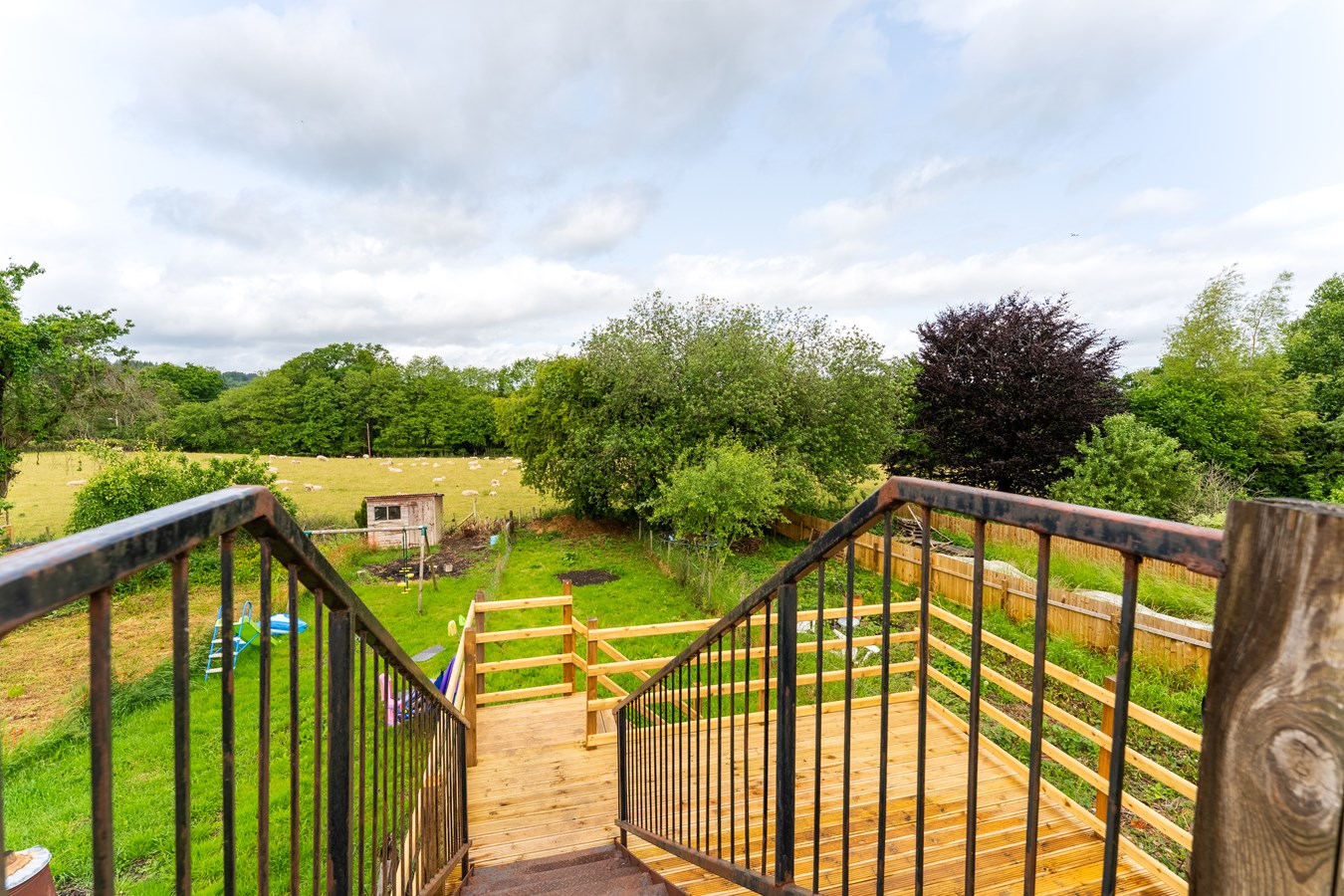 - Impressive outdoor space, including front and rear gardens, private decking, and a large lawn backing onto open farmland