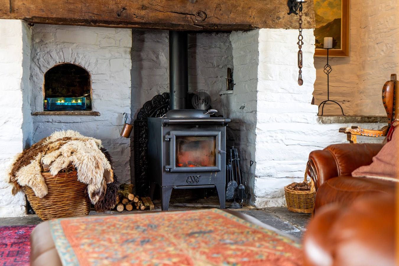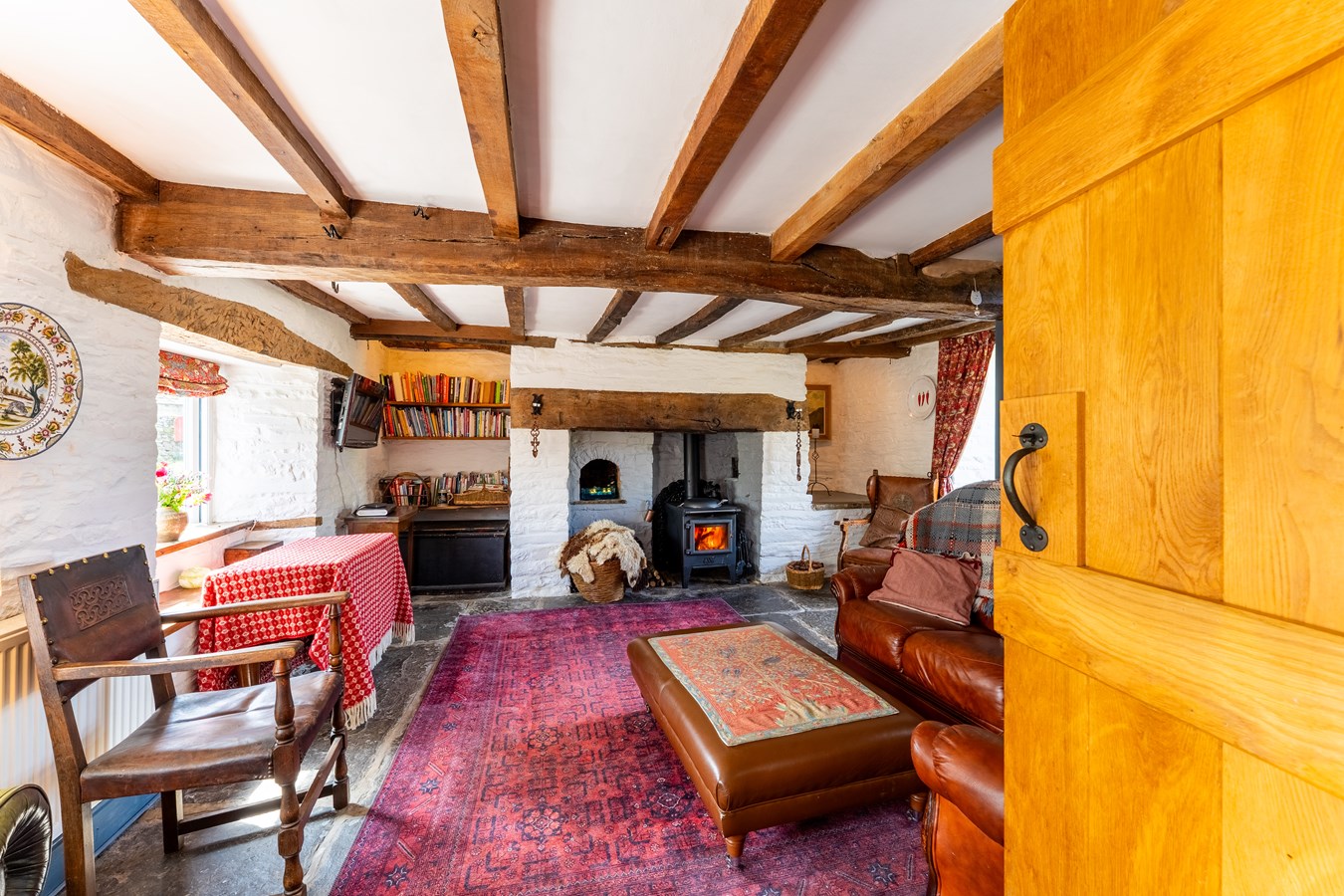 - Cosy Ground Floor Lounge - Featuring exposed beams, an inglenook fireplace, original bread oven, and timber panelling