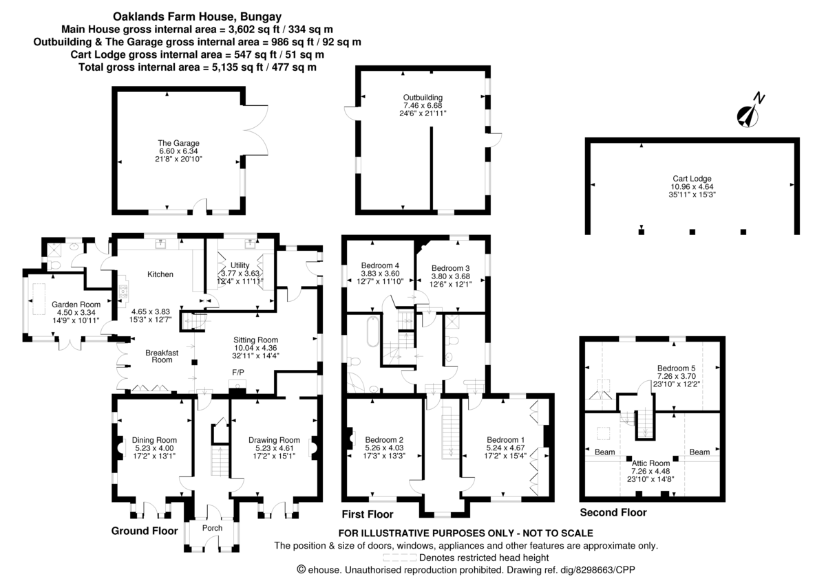 The first floor landing serves a master bedroom with en-suite, bespoke shaker style fitted wardrobes, three further bedrooms and a family bathroom. A further staircase leads to the top floor where bedroom five can be found as well as access to the unconverted attic space.