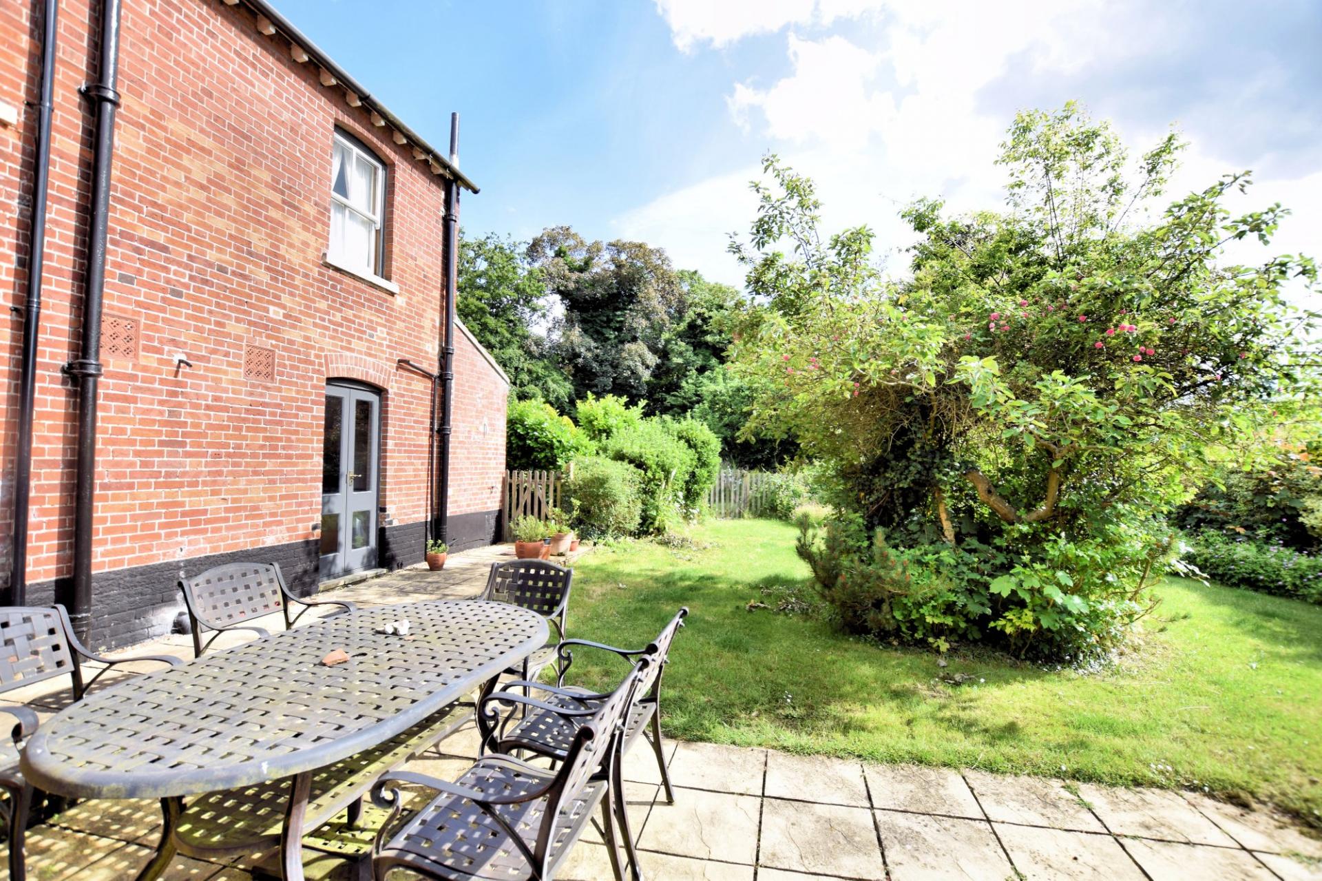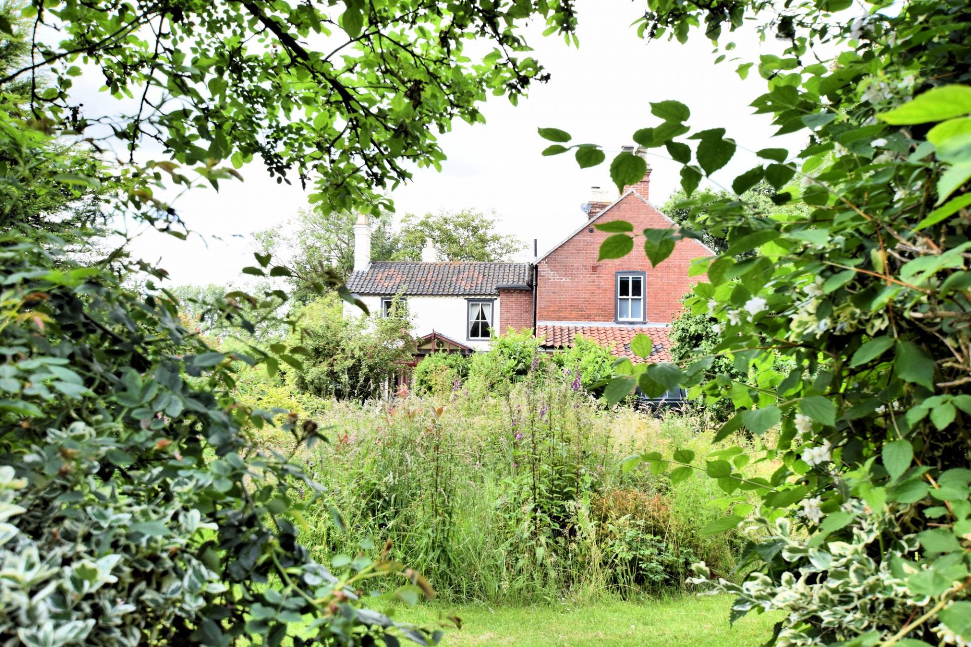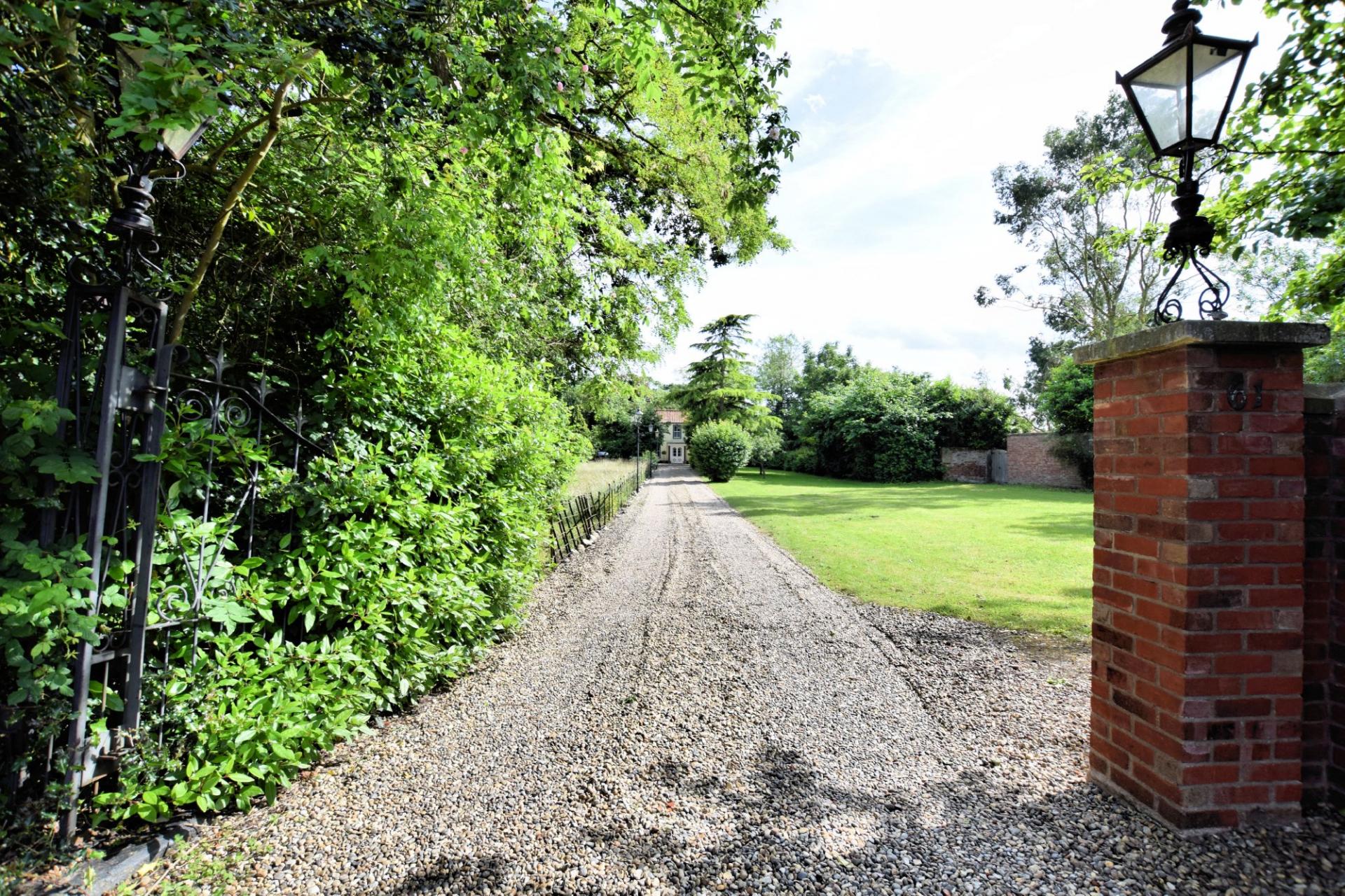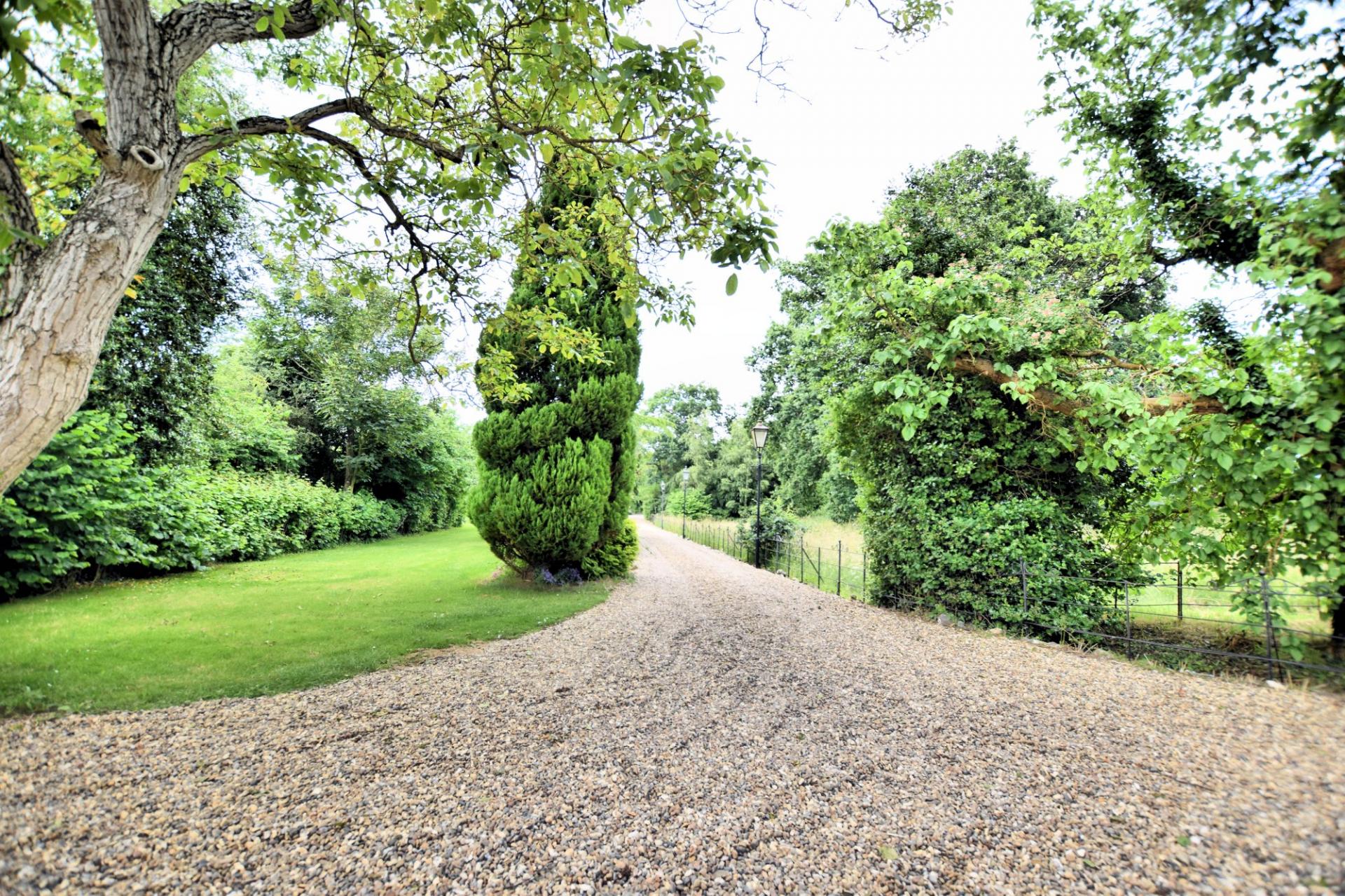 OUTSIDE The outside space at Ellinghm House is stunning and really has it all. As you pull up to the property you are greeted by a long and grand entrance driveway with large areas of lawn and walled gardens to the left and an unspoilt natural meadow or grazing land to the right. To the side aspect of the property there is the former tennis lawn surrounded by a mature treeline providing an absolutely private space to enjoy. Towards the back of the property we have another family garden laid to lawn, wood shed, garage, and some former stabling currently used for additional storage. There is a further gravelled parking area and fully enclosed floral garden leading from the garden room with additional sun terrace. Totalling two acres it really is a special place and offers so much to garden lovers and families alike.