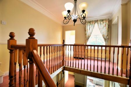 STUDY 12' 2" x 9' 9" (3.71m x 2.97m) To the left of the entrance hall there is an ample study or home office with all the necessary points. Window to the front aspect and feature brick fireplace, carpet flooring and access to the left storage wing.