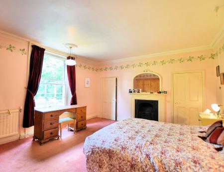 MASTER BEDROOM 15' 11" x 14' 1" (4.85m x 4.29m) The master bedroom boasts ample space, lovely views, built-in storage units, feature iron fireplace and fully fitted carpet flooring.