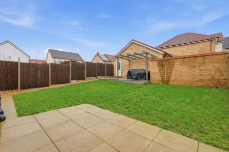 Large laid to lawn area. Paved patio to front - and side, leading to garage. Small gravelled area behind garage at rear. Side accessway to front with gate.
