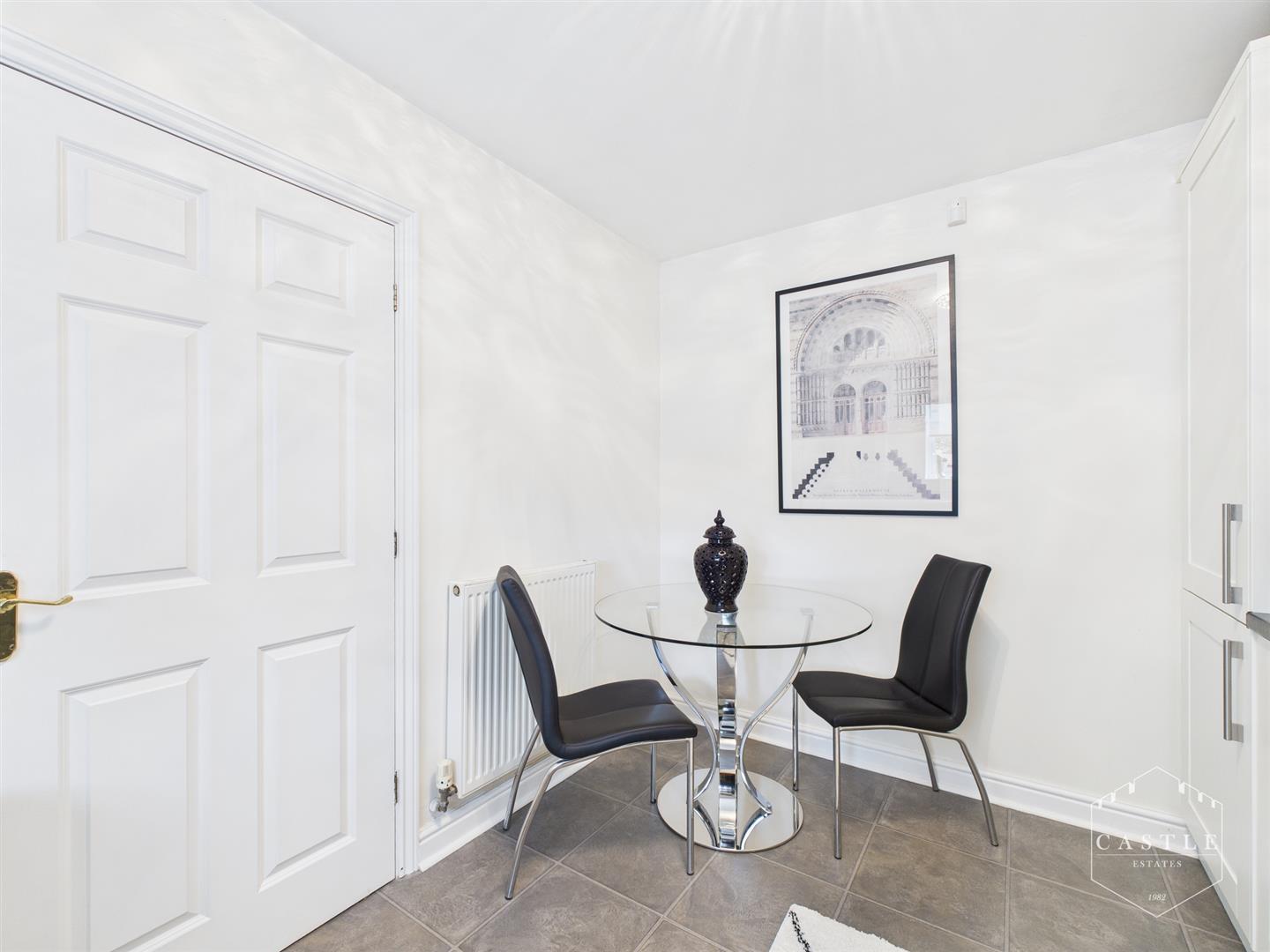 Dining Kitchen - 3.64m x 2.61m (11'11" x 8'6" ) - having an attractive range of white Shaker style units including base units, drawers and wall cupboards with under lighting, contrasting work surfaces and upstands, inset stainless steel sink with mixer tap, built in electric oven, gas hob with splashback and cooker hood over, integrated fridge freezer, integrated dishwasher, space and plumbing for washing machine, central heating radiator and upvc double glazed window to front.