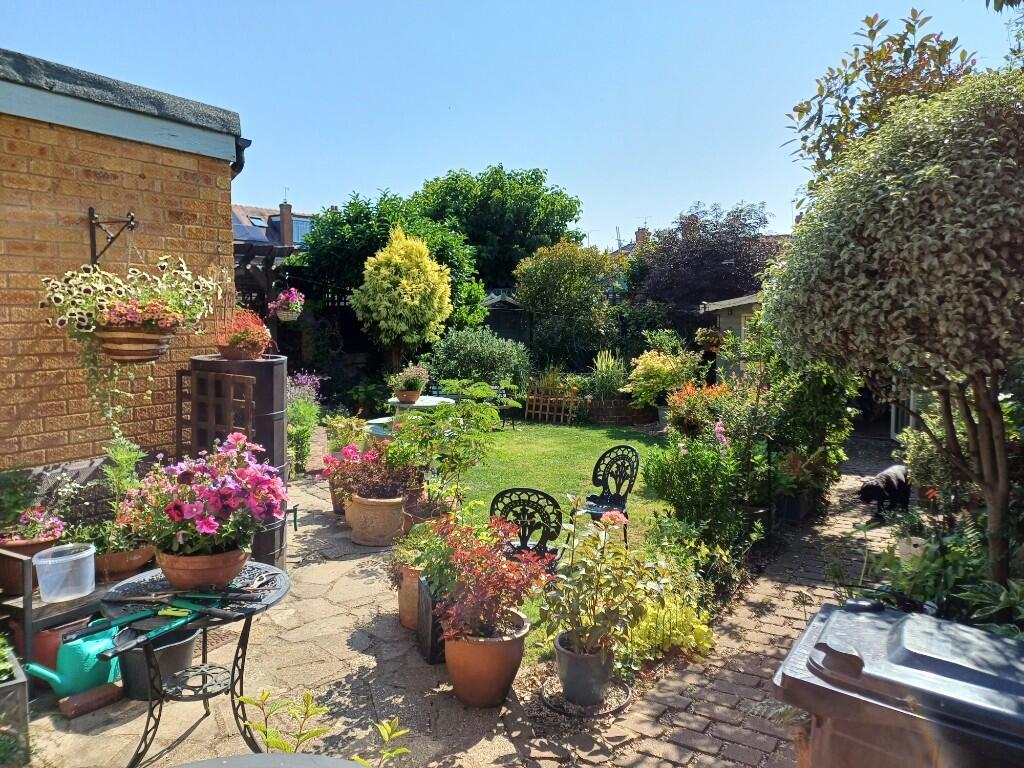 Rear Garden:- - Commencing with a paved patio area leading to a mature lawn. The fenced boundaries are lined with various trees and shrubs. A large summer house is located to the rear of the garden.