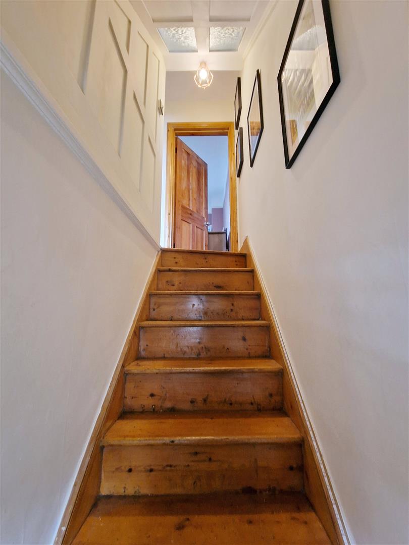 Staircase:- - Solid wood stairs lead passed panelled walls and ceiling to the first floor landing. Doors lead to two double bedrooms. Stairs lead to second floor bedroom and eaves storage.