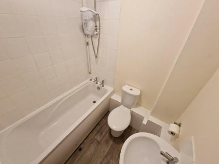 Bathroom:- - White suite comprising a panel bath with electric shower over bath, close coupled wc, pedestal hand wash basin, extractor fan.