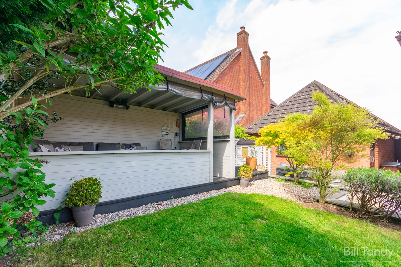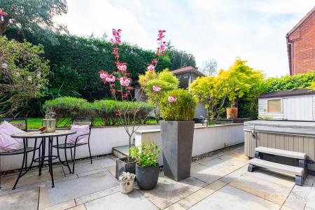 The property is set well back from the road behind a lovely landscaped foregarden having lawn, mature shrubs and bushes and a double width block paved driveway providing ample off road parking leading to the detached double garage and front porch. To the rear of the property is a full width paved patio seating area incorporating an area behind the garage ideal for a hot tub with wall mounted speakers, shed, decorative dwarf wall leading to the lawn beyond having a composite decked area to one side with summerhouse, conifers to the rear for screening and well thought out raised decked seating area perfect for entertaining.