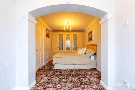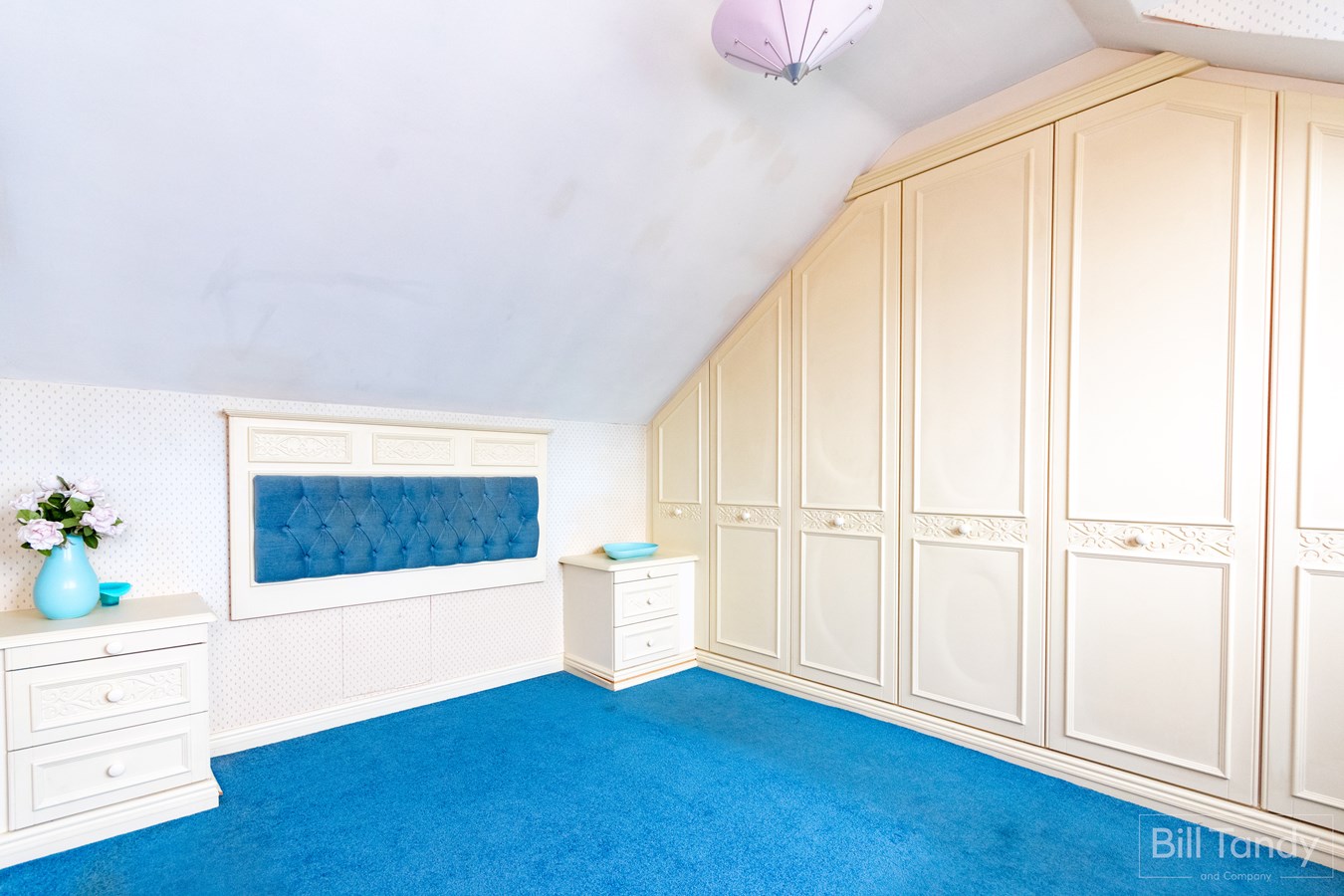 3.90m x 3.30m (max into wardrobes) (12' 10" x 10' 10" max into wardrobes) having built-in wardrobes to one wall and matching built-in bedside tables, two ceiling light points, radiator, UPVC double glazed window to rear and access to eaves storage.