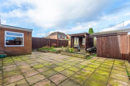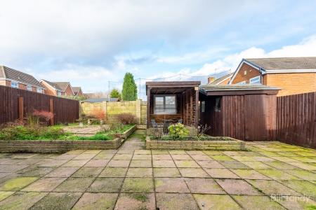 The property is set well back from the road behind a lawned foregarden with bedding plant border and a paved driveway suitable for multiple vehicles leading to the garage and front door. To the rear is an enclosed garden being paved for low maintenance and having hard standing for good sized shed, sheltered seating paved area off the dining room with lovely UPVC awning, further raised patio seating area, brick built raised flower beds and bedding plant border.
