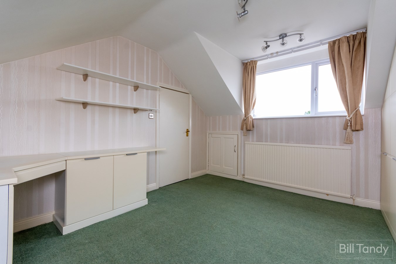 3.60m x 3.50m (11' 10" x 11' 6") having built-in wardrobes to one wall, matching built-in corner desk, two ceiling light points, radiator, UPVC double glazed window to rear and access to eaves storage.