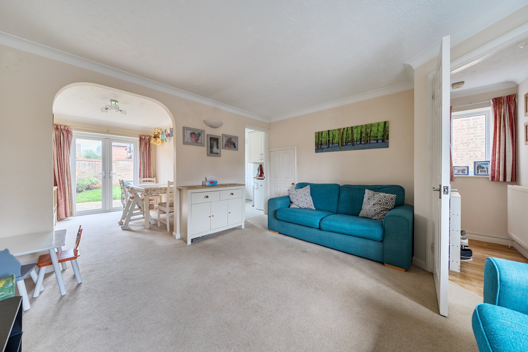 This attractive three-bedroom link-detached home is situated in the popular village of Burpham and offers comfortable, well-presented living spaces, along with the convenience of a private garage and driveway parking. Designed with a practical layout and a welcoming feel throughout, it's a property that suits both family life and relaxed entertaining.The living room provides a warm and inviting setting, featuring soft carpeting and cream-coloured walls that create a calm, neutral backdrop. An open archway leads directly into the dining room, enhancing the sense of space and continuity between the two areas. Here, matching décor and double glass doors bring in natural light and offer a seamless flow out into the garden.The kitchen combines style and functionality, fitted with cream shaker-style cabinetry and light wood-effect worktops. White tiled flooring brightens the room, complemented by light sage walls that add a gentle hint of colour. It's a practical and pleasant space for daily cooking and meal preparation.Upstairs, the main bedroom features fitted wardrobes with sliding mirrored doors, along with a blend of purple and cream walls and soft carpeting for a cosy atmosphere. Bedroom two provides useful storage with its built-in cupboard and is finished in calming cream tones. Bedroom three continues the home's soft, natural palette with light sage and cream walls, making it ideal as a bedroom or study. The modern bathroom features contemporary tiled walls and laminate flooring, creating a clean and fresh finish.Outside, the garden offers a versatile outdoor area with a generous patio laid with contrasting slabs, perfect for outdoor dining or relaxing. A lawned section provides additional space, and the boundaries of walls and fencing ensure privacy and a secure, enclosed feel. Overall, this home blends comfort, practicality and thoughtful design in a highly convenient location.