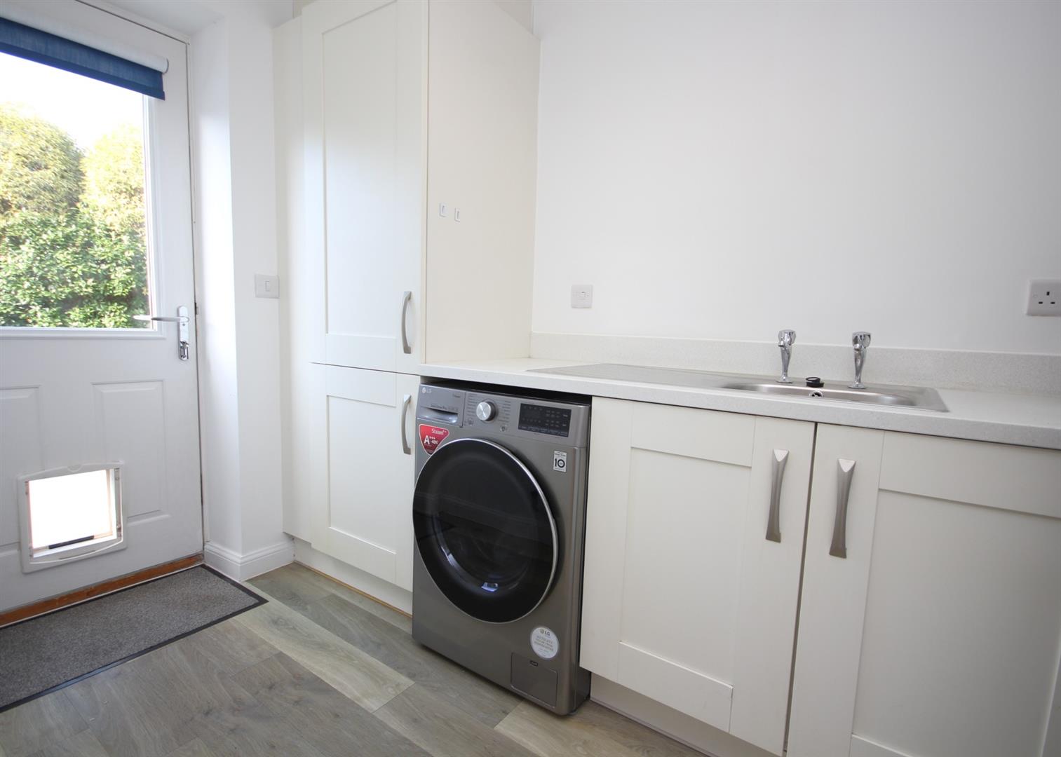Utility room providing additional storage space, plumbing for appliances & built in storage cupboard