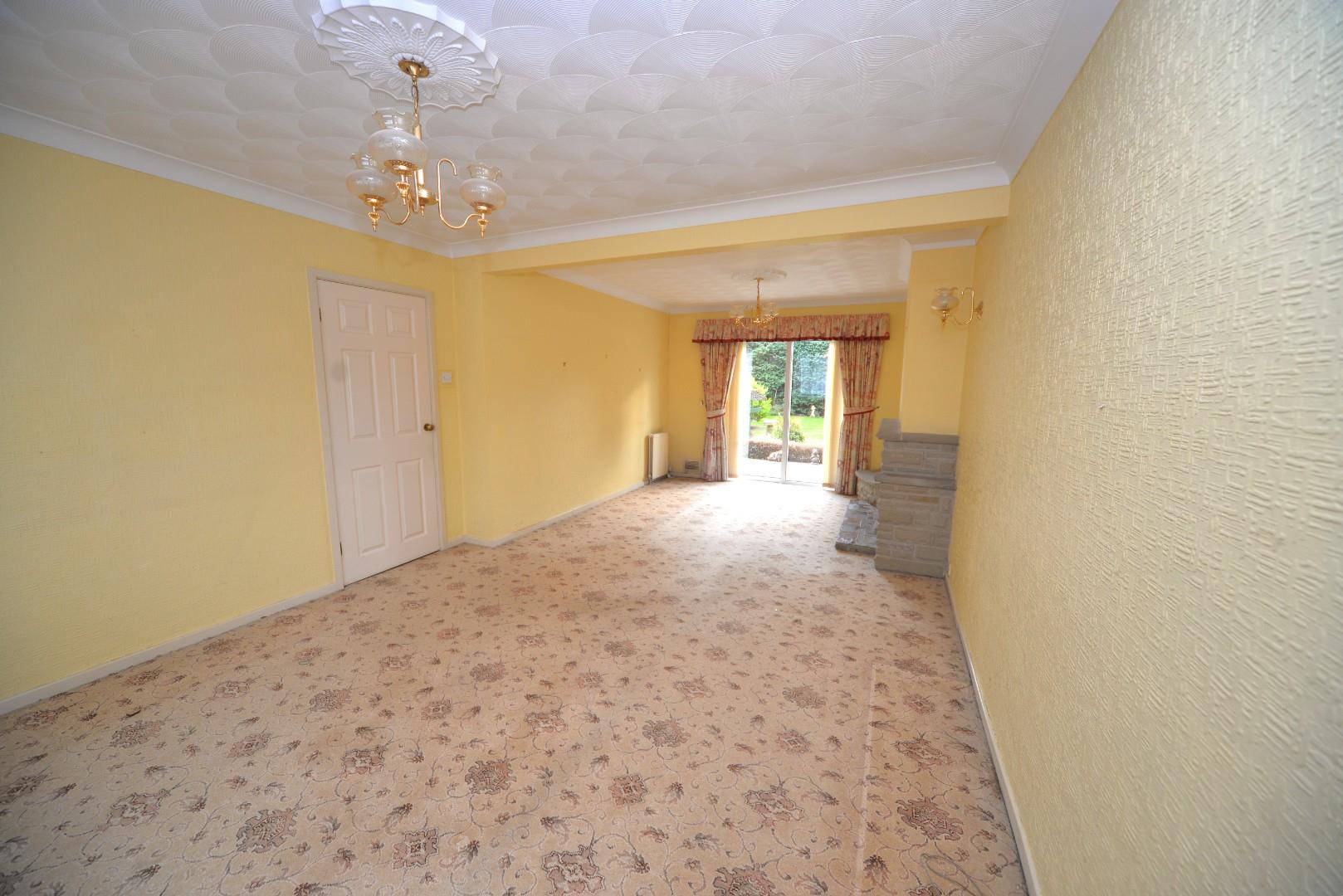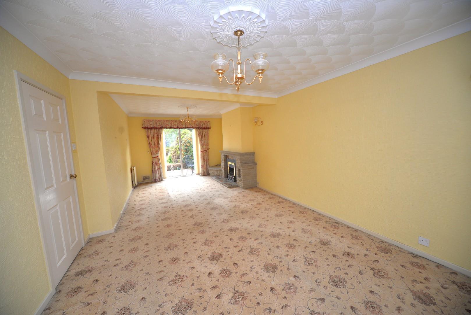 3.65m width x 3m (11'11" width x 9'10") - Has a small bay window to the front aspect, sliding patio doors to the rear, a stone feature fire surround with stone mantle and slate hearth with living flame gas fire inset, there is two ceiling light points, wall light points and radiator.