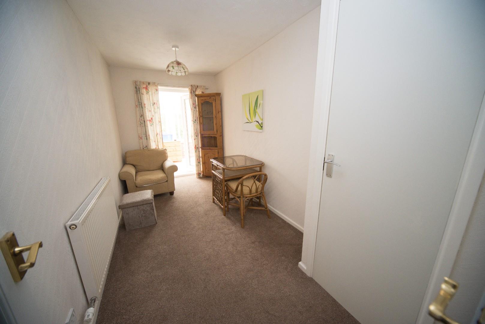 2.25m x 2.18m from door to back wall (7'4" x 7'1" - Has French doors opening out onto the rear patio area and radiator.