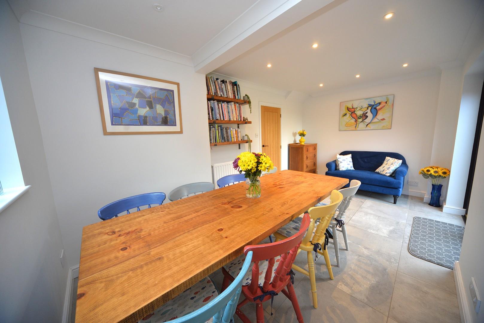 As you enter, you are greeted by light, bright hallway with stairs off to the first floor, a dual aspect lounge that is bathed in natural light, leading to a charming conservatory that offers a tranquil space to relax. The large dining room, complete with space for a small sofa, is ideal for entertaining guests or for family meals. The modern fitted kitchen is well-equipped, making it a delight for any home cook. Additionally, the property includes a utility room and a convenient guest cloakroom.