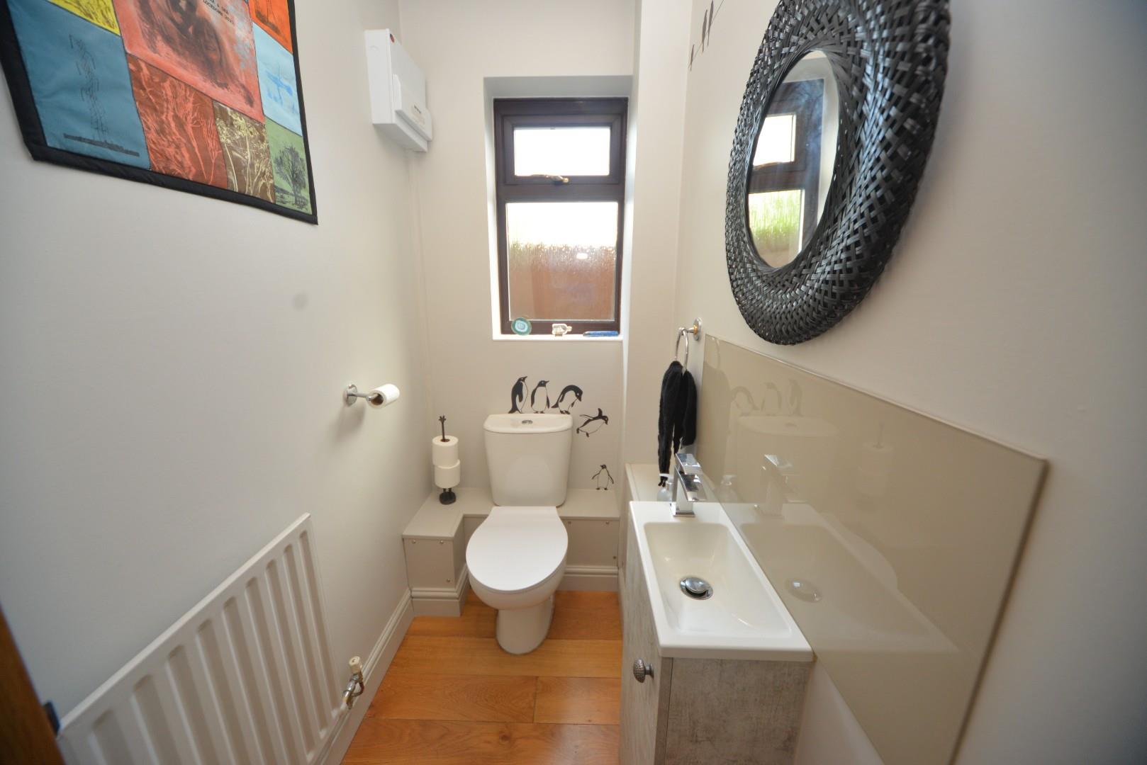 1.03m x 2.25m (3'4" x 7'4" ) - Has an obscure window to the rear aspect, W.C., hand wash basin set within a vanity unit with glass splashback, there is a ceiling light point and radiator.