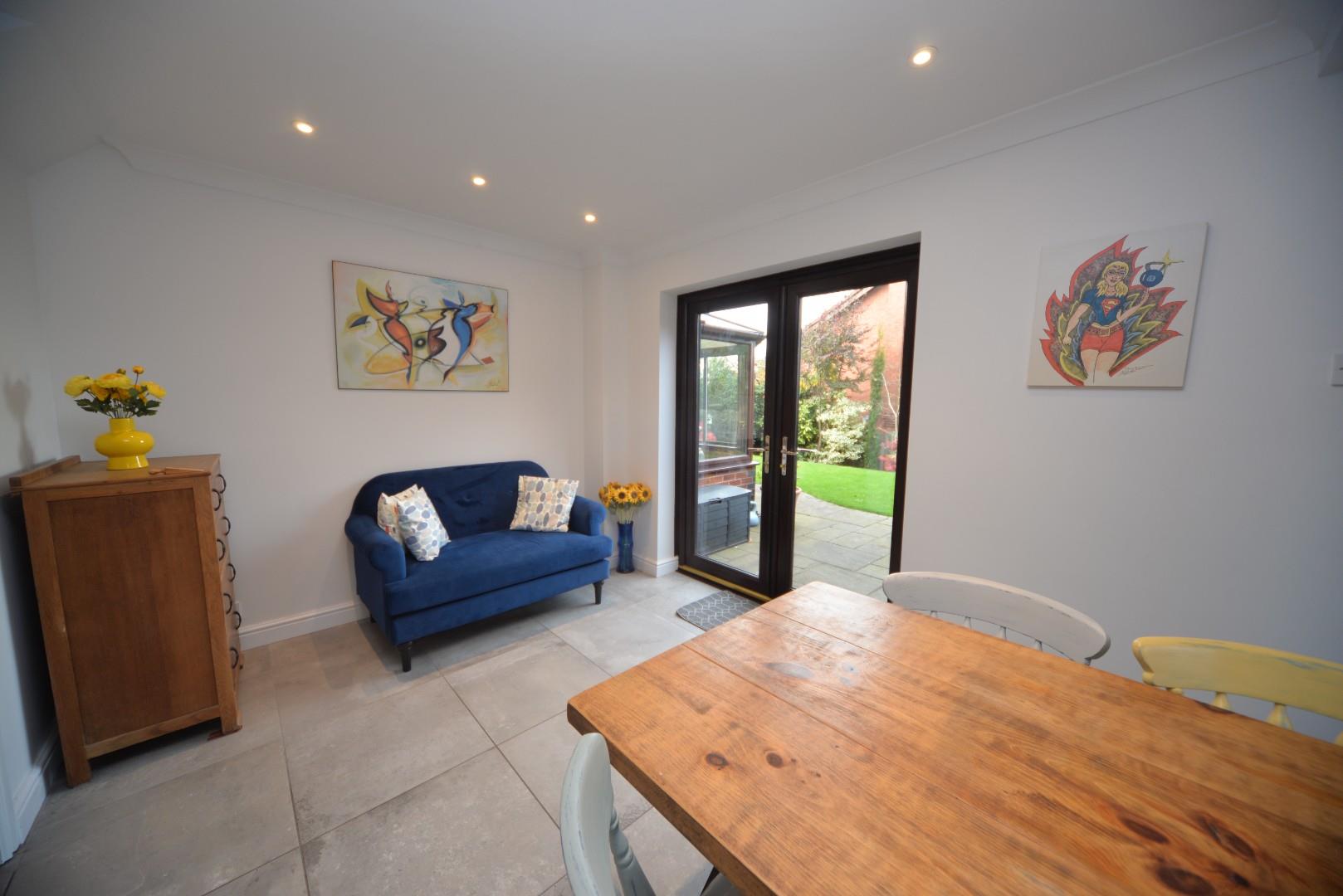 5.07m x 2.83m max 2.54m min (16'7" x 9'3" max 8'3" - This attractive space has a window to the side aspect, French doors that lead out onto the rear patio with views over the garden, there are recessed ceiling down lights, coving to ceiling, attractive tiled flooring, radiator and a door leading through to the utility room.