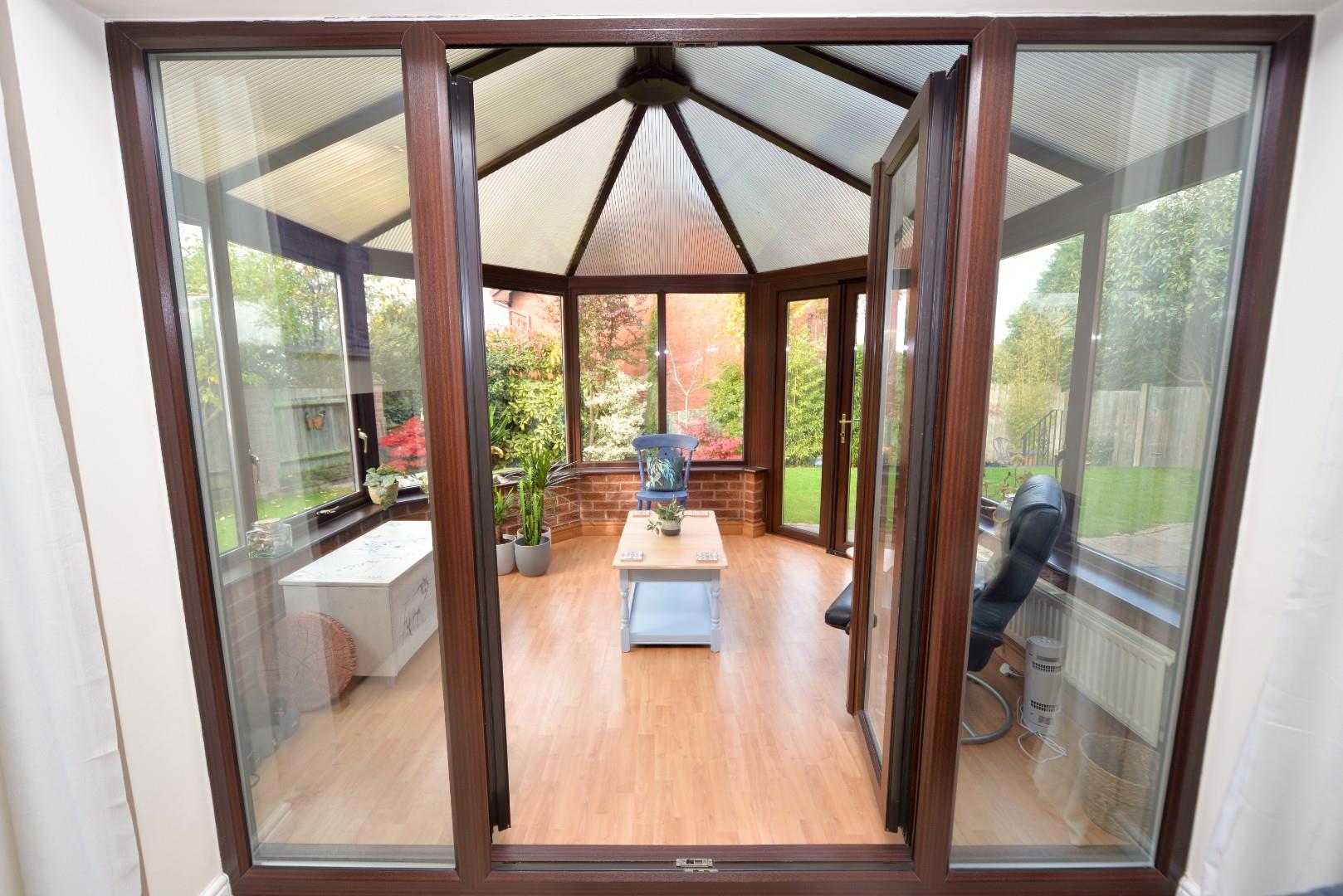 6.42m x 3.61m max 3.49m min (21'0" x 11'10" max 11 - Has a lovely square bay window to the front aspect, French doors with glazed screens lead out into the conservatory, there is coving to ceiling, contemporary style fire surround with electric fire inset, recessed ceiling down lights, wall light points and ceiling light points.
