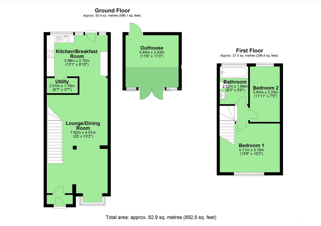 The home features a spacious lounge and dining room, a beautiful modern fully fitted kitchen, a separate utility room, two well-proportioned bedrooms, and a family bathroom on the first floor.