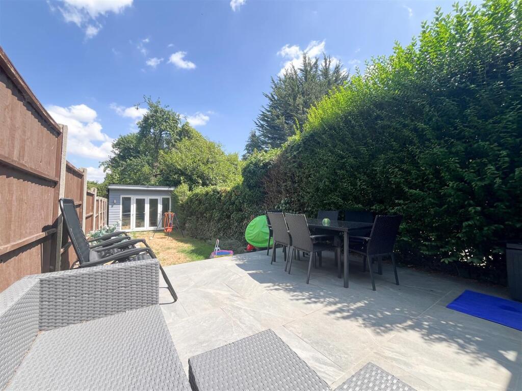 Outside, there is a well-maintained garden and a lovely outhouse with air-conditioning perfect for use as a home office, gym, or summer house. Additionally, the property benefits from a private driveway with space for one car and an electric vehicle charging point.
