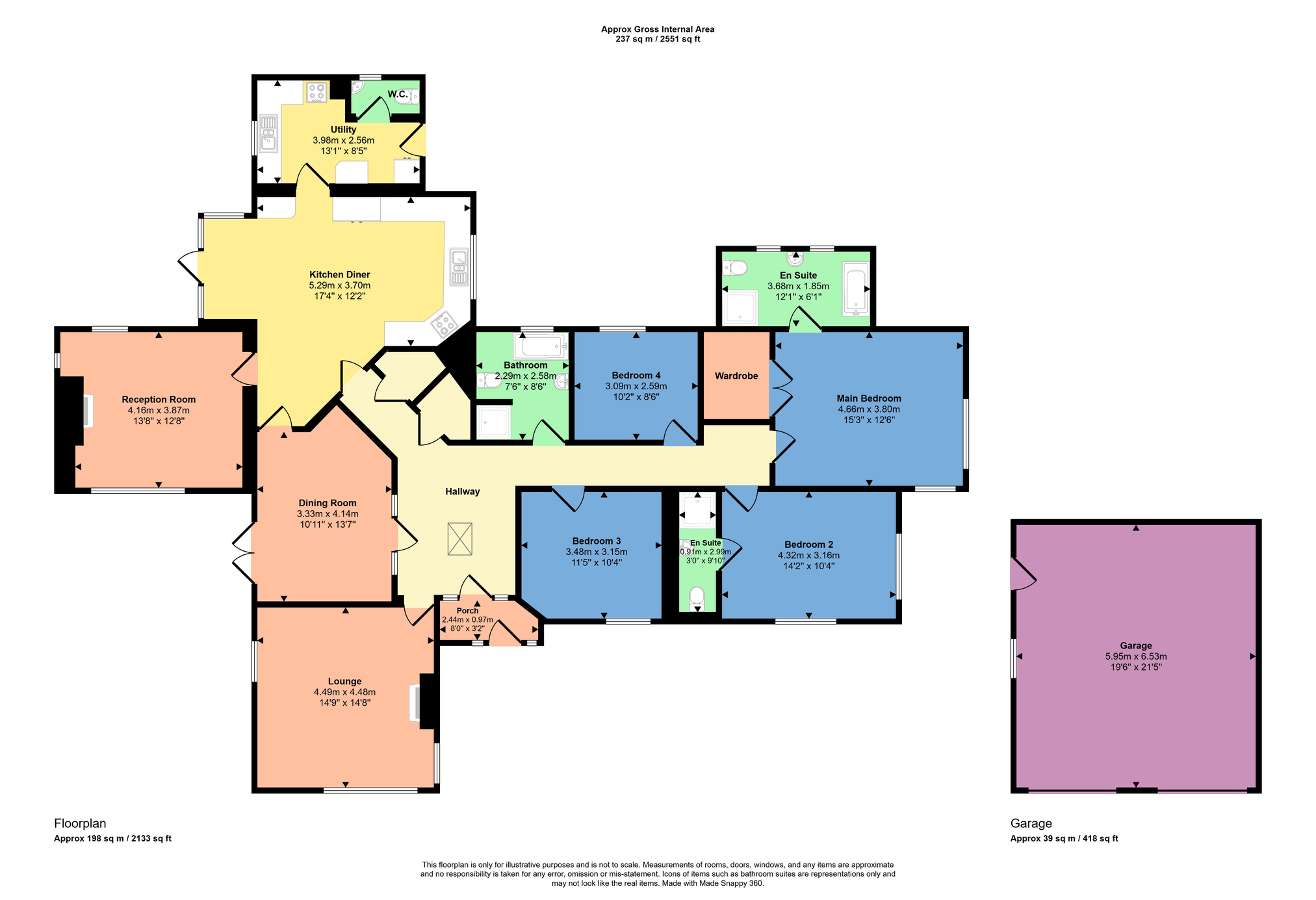 - Spacious family accommodation comprising 3 Recs, 4 Beds (2 with ensuite), Detached Double Garage.