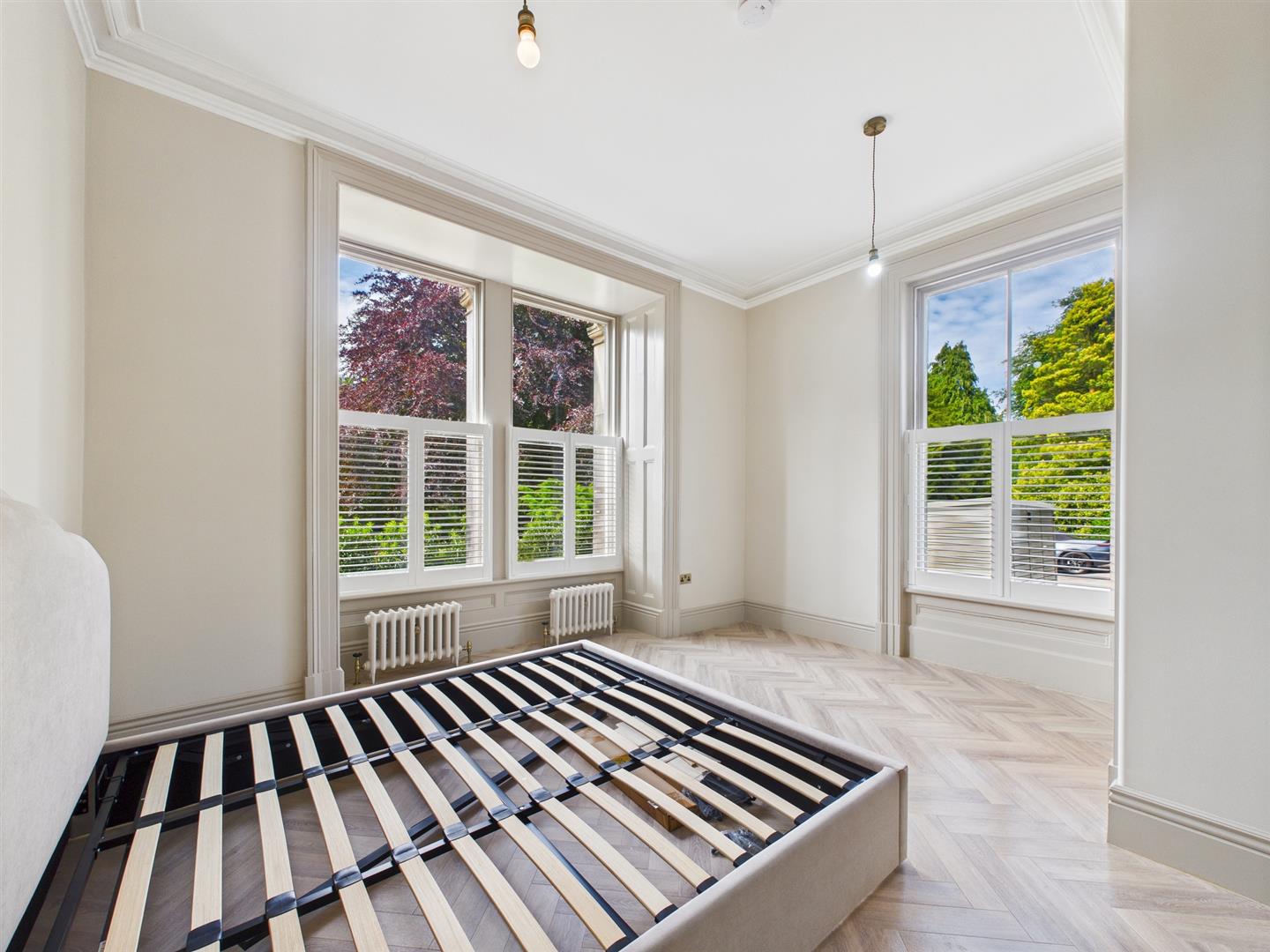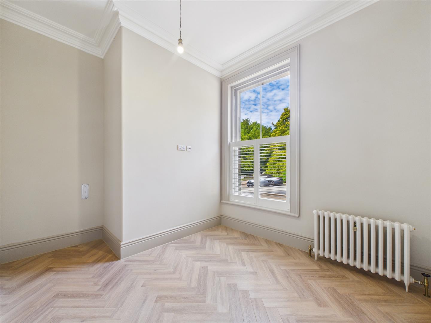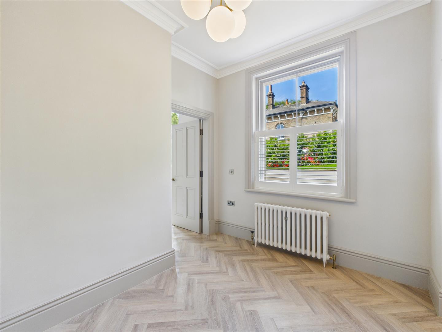 Bedroom Two - Ceiling coving, sash window and original style radiator.