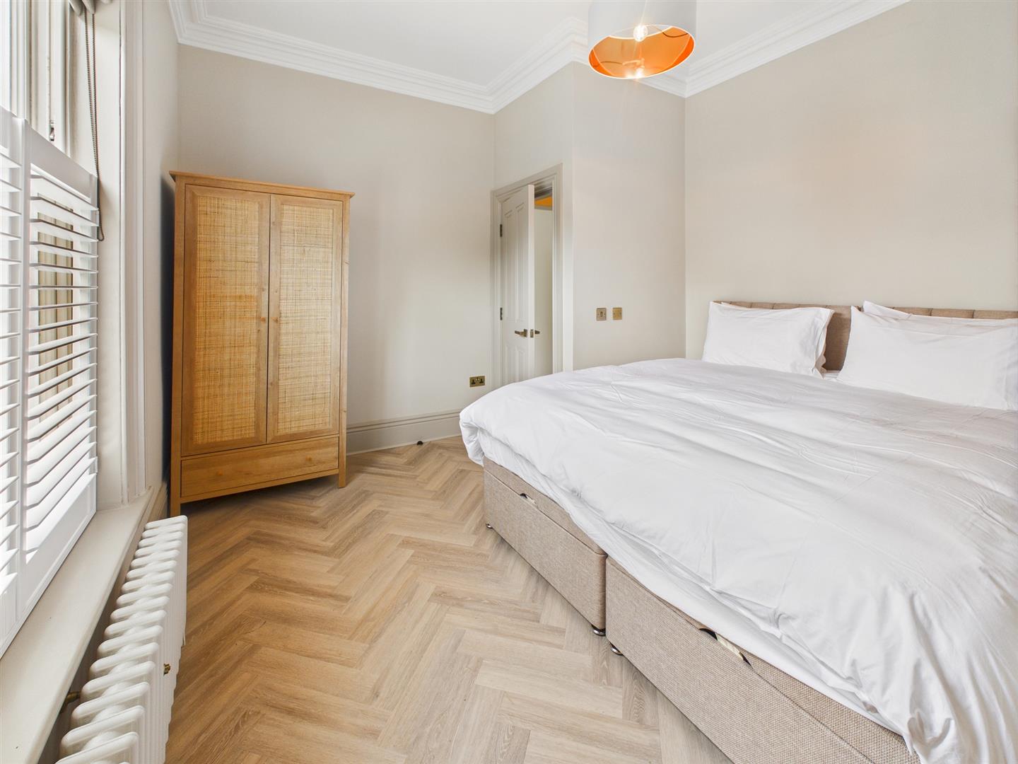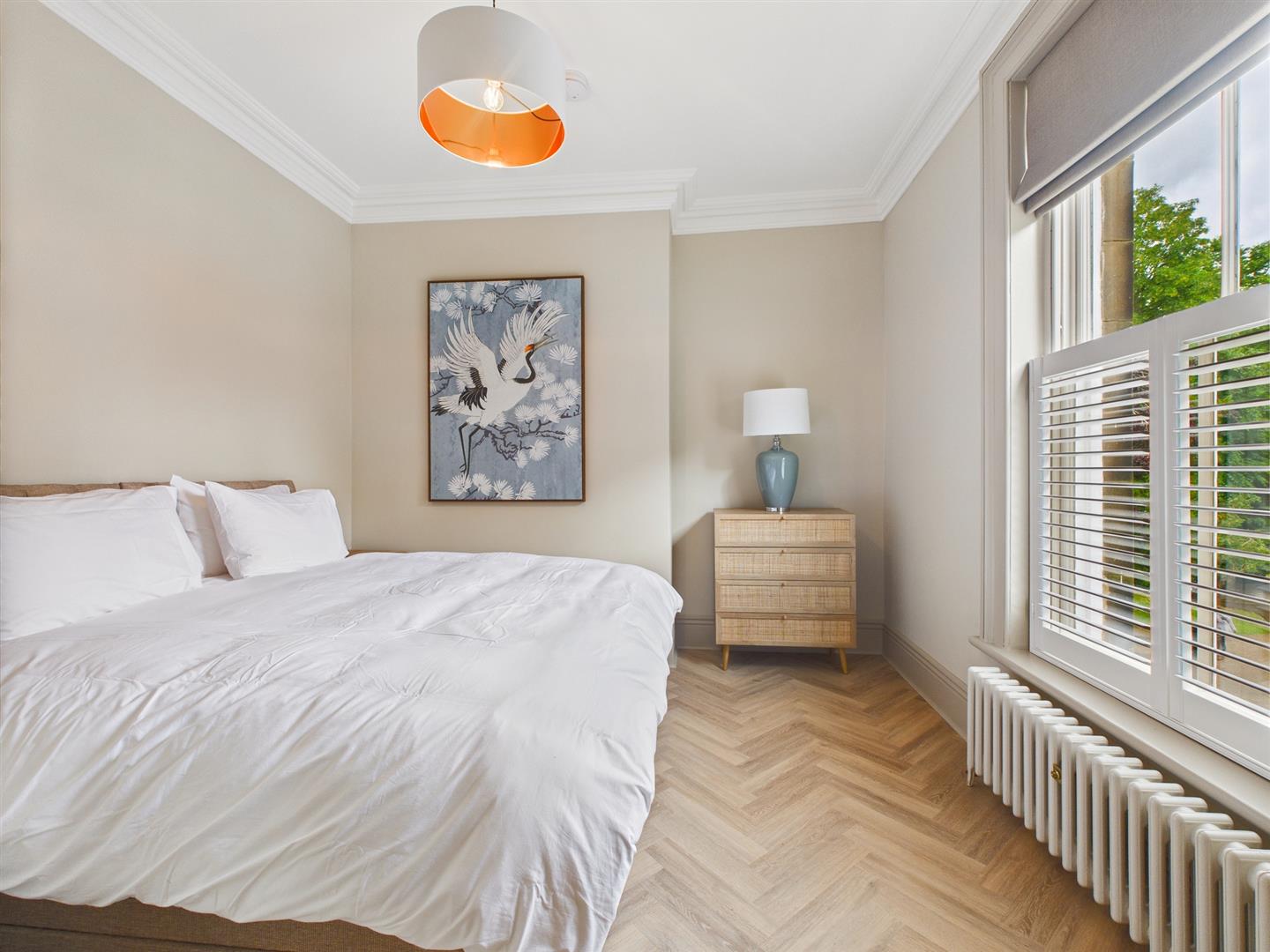 Bedroom One - Two original style radiators, wood effect flooring, sash bay window to front and sash window to side.