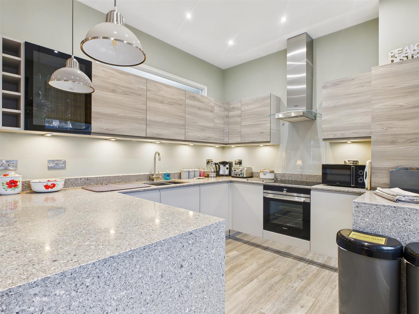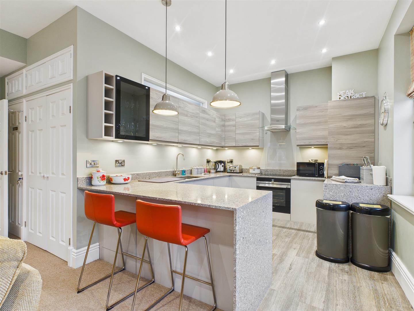 Kitchen - 3.15m x 2.97m (10'4" x 9'9") - Fitted with an excellent quality range of base and eye level units and granite working surfaces incorporating a one and a half bowl sink unit with splash back. Integrated oven, four ring induction hob and stainless steel extractor fan over. Integrated fridge, integrated dishwasher, integrated freezer and integrated washer/dryer. Breakfast bar and two secondary glazed sash windows.