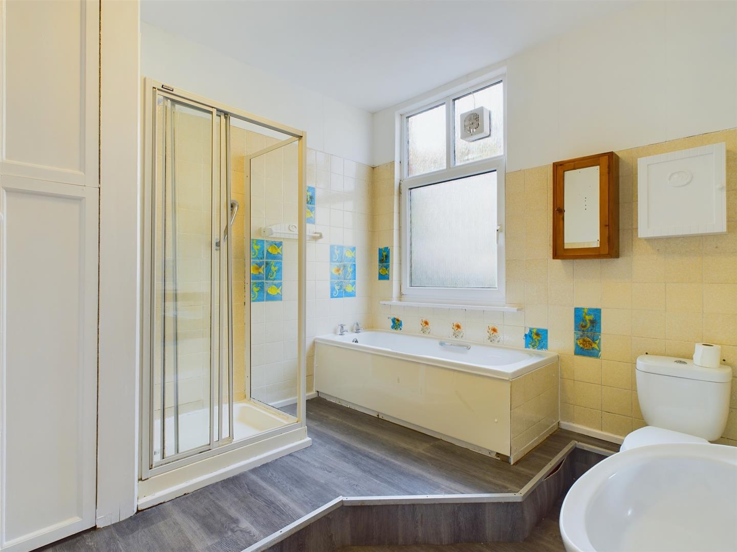 Bathroom - 3.18m x 1.47m (10'5" x 4'10") - Fitted with a panelled bath, pedestal wash basin and low level W.C. With double radiator, frosted uPVC sealed unit double glazed window to rear and extractor fan. Fully tiled and glazed shower cubicle, storage cupboard and three quarter tiled throughout.